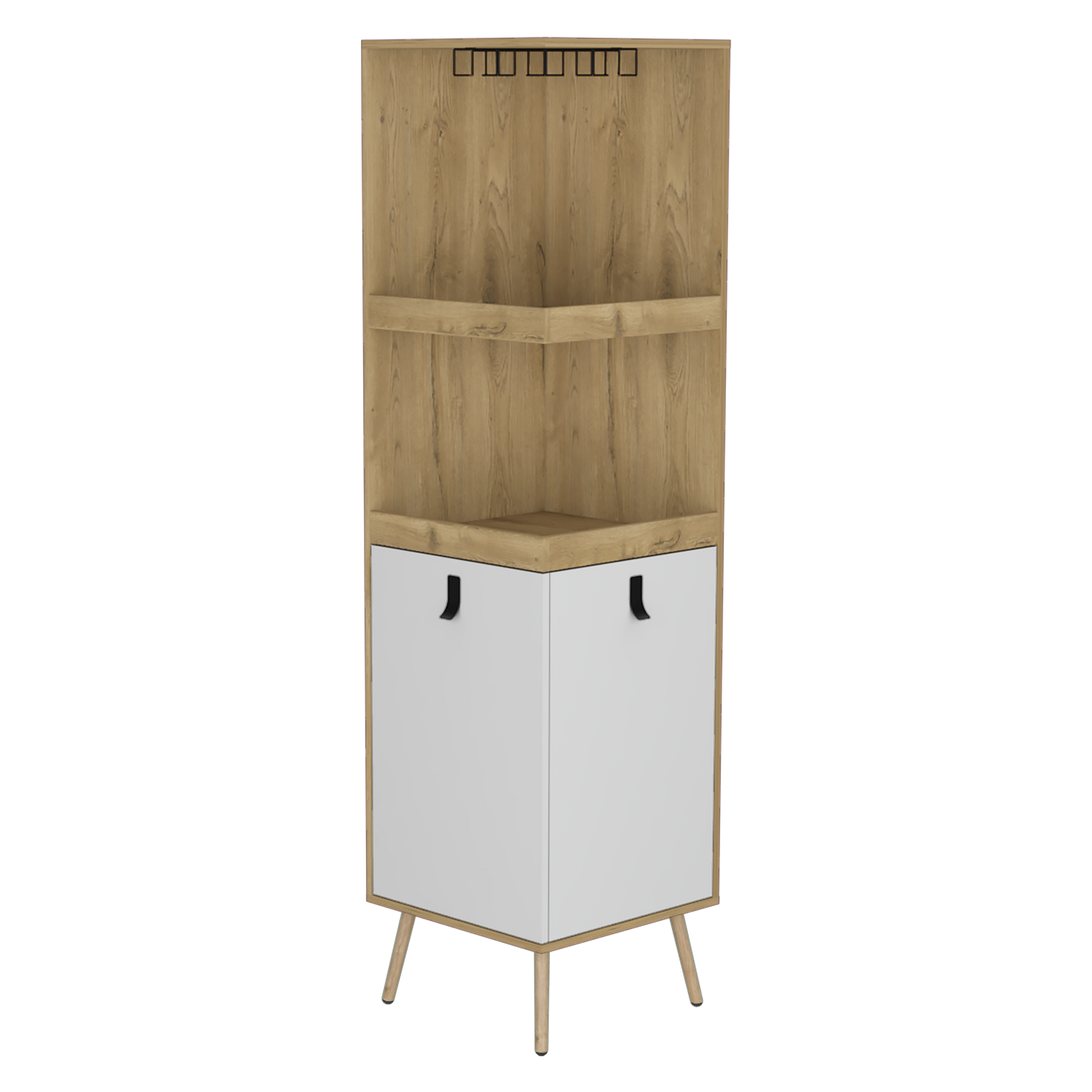 Bar Esquinero Seis Botelleros Y Dos Puertas Fm 012C Café Claro Y Blanco