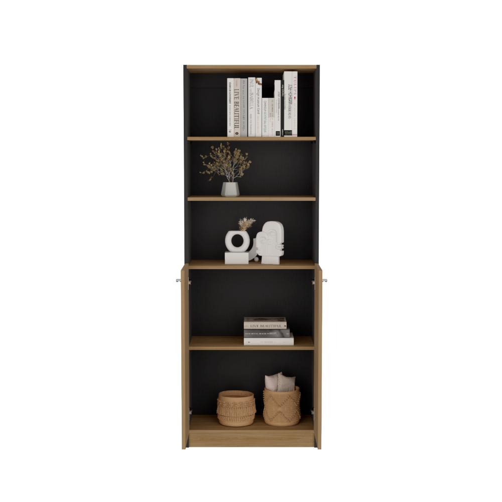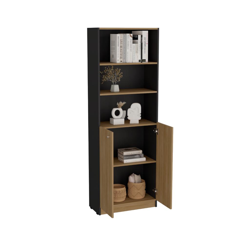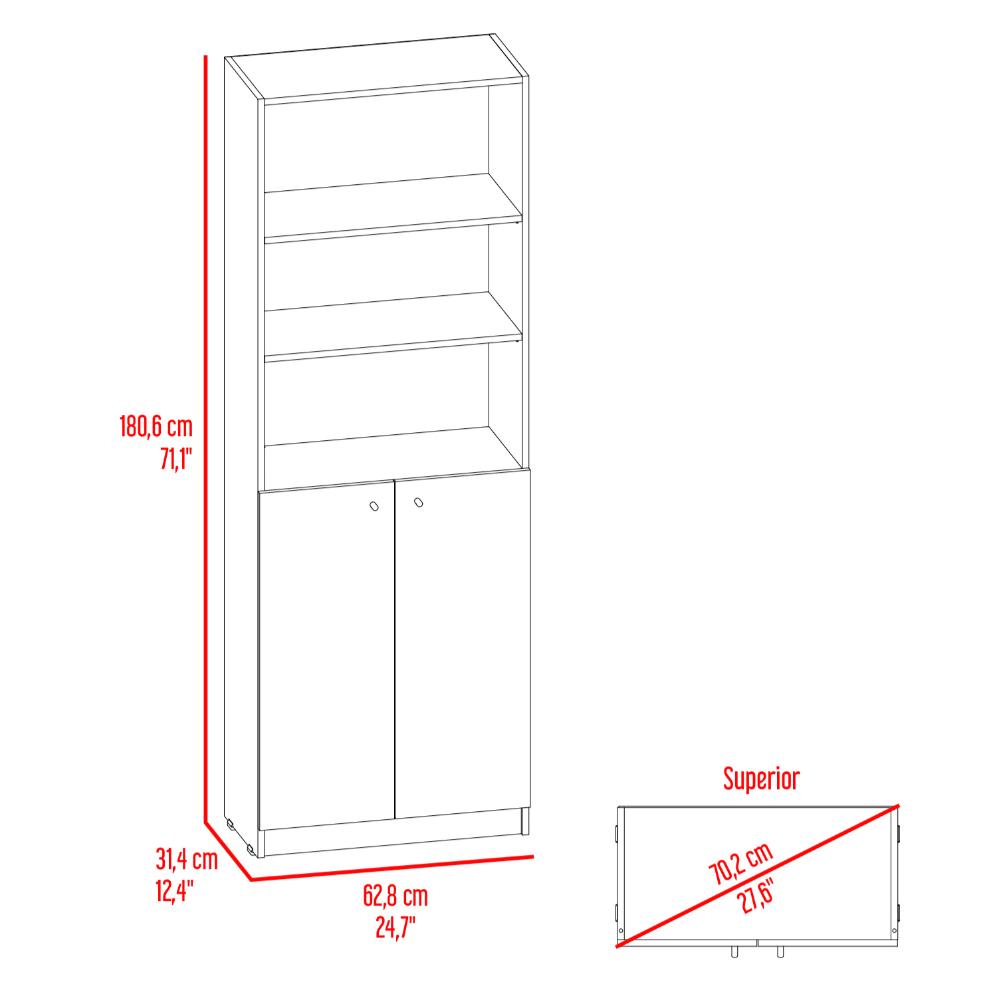 Biblioteca, con espacio para libros y objetos decorativos, dos puertas abatibles, de fácil armado e instalación.