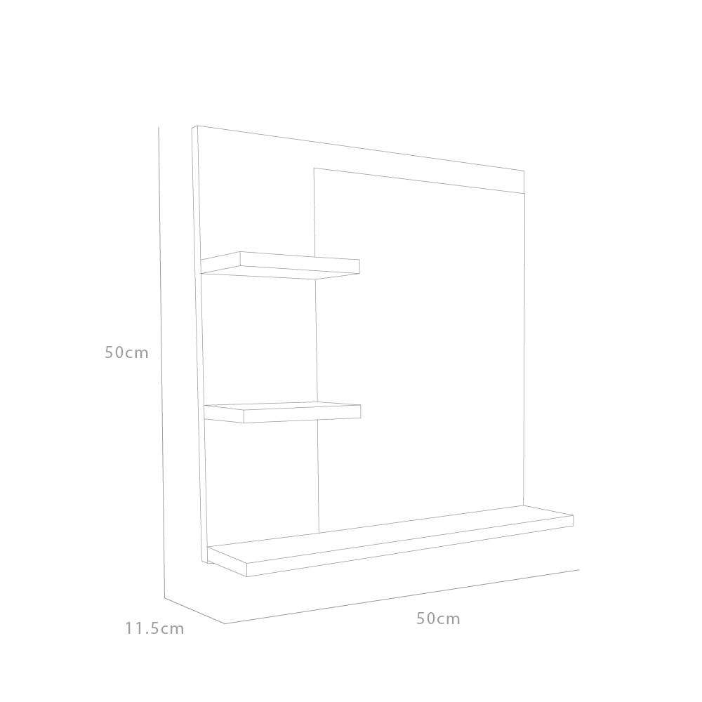Elaborado en Madera MDP color claro cal 15 mm y espejo rectangular en Cal 2mm, cuenta con 3 tornillos y chazos para facilitar su instalación.