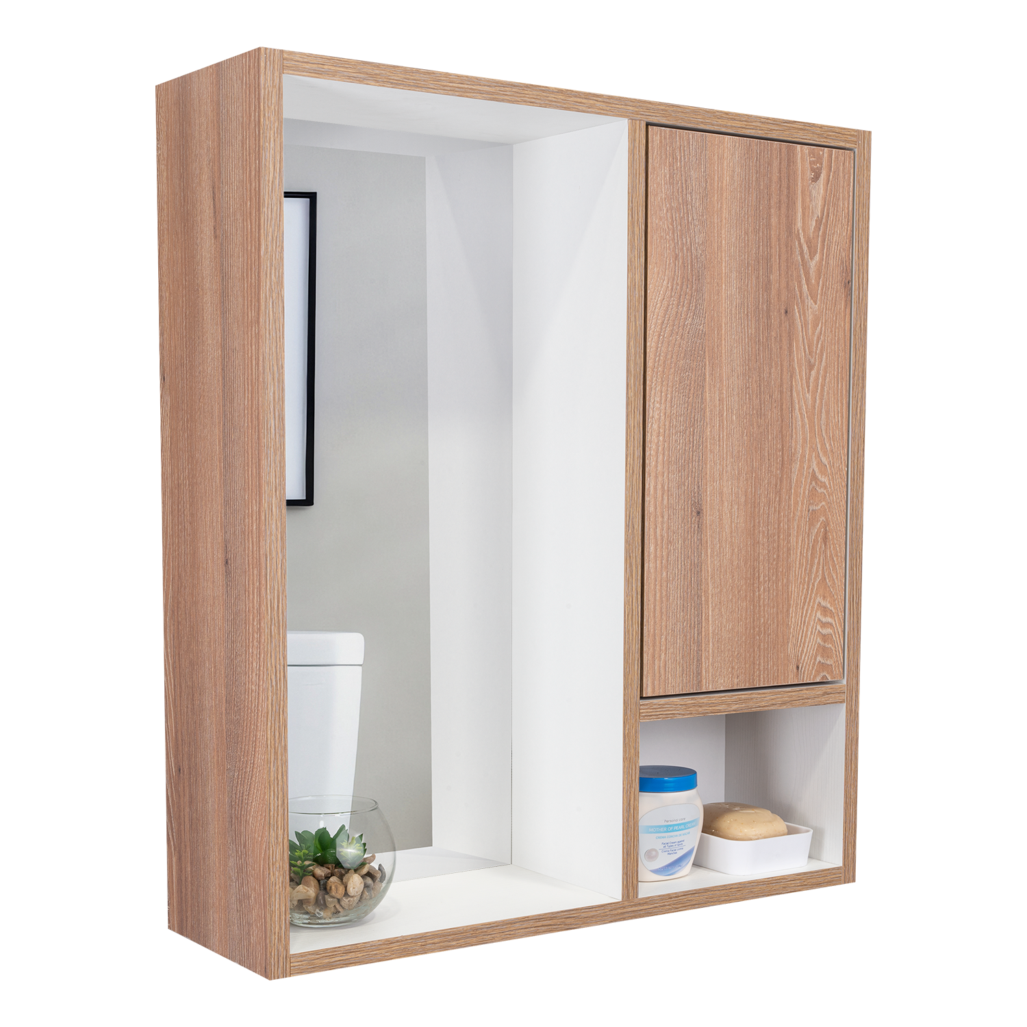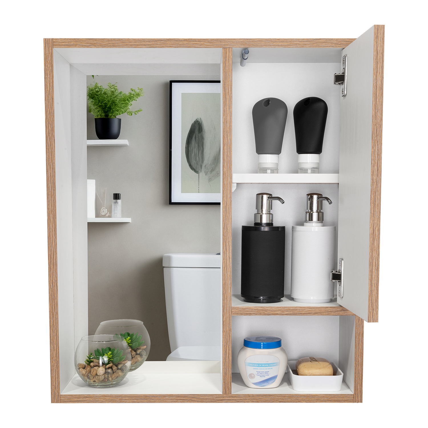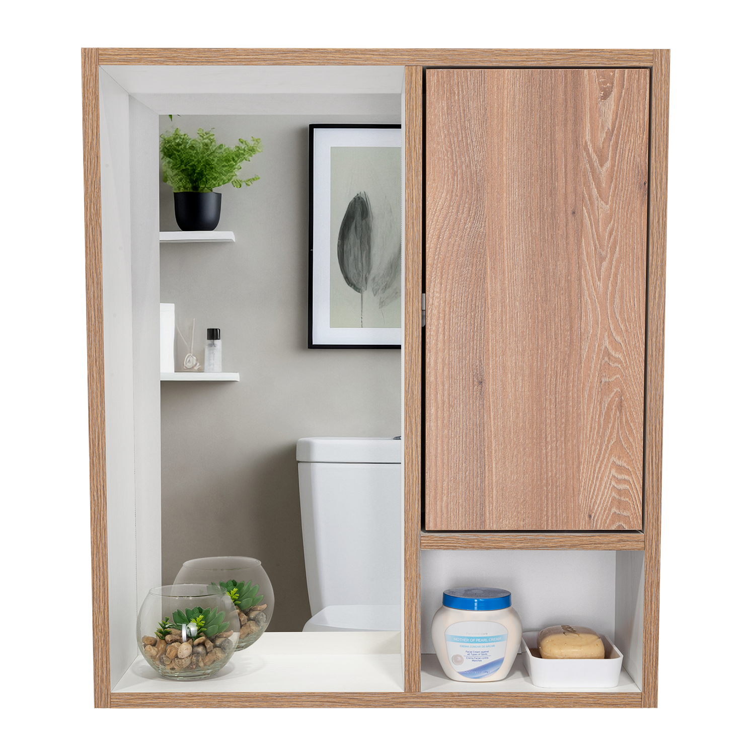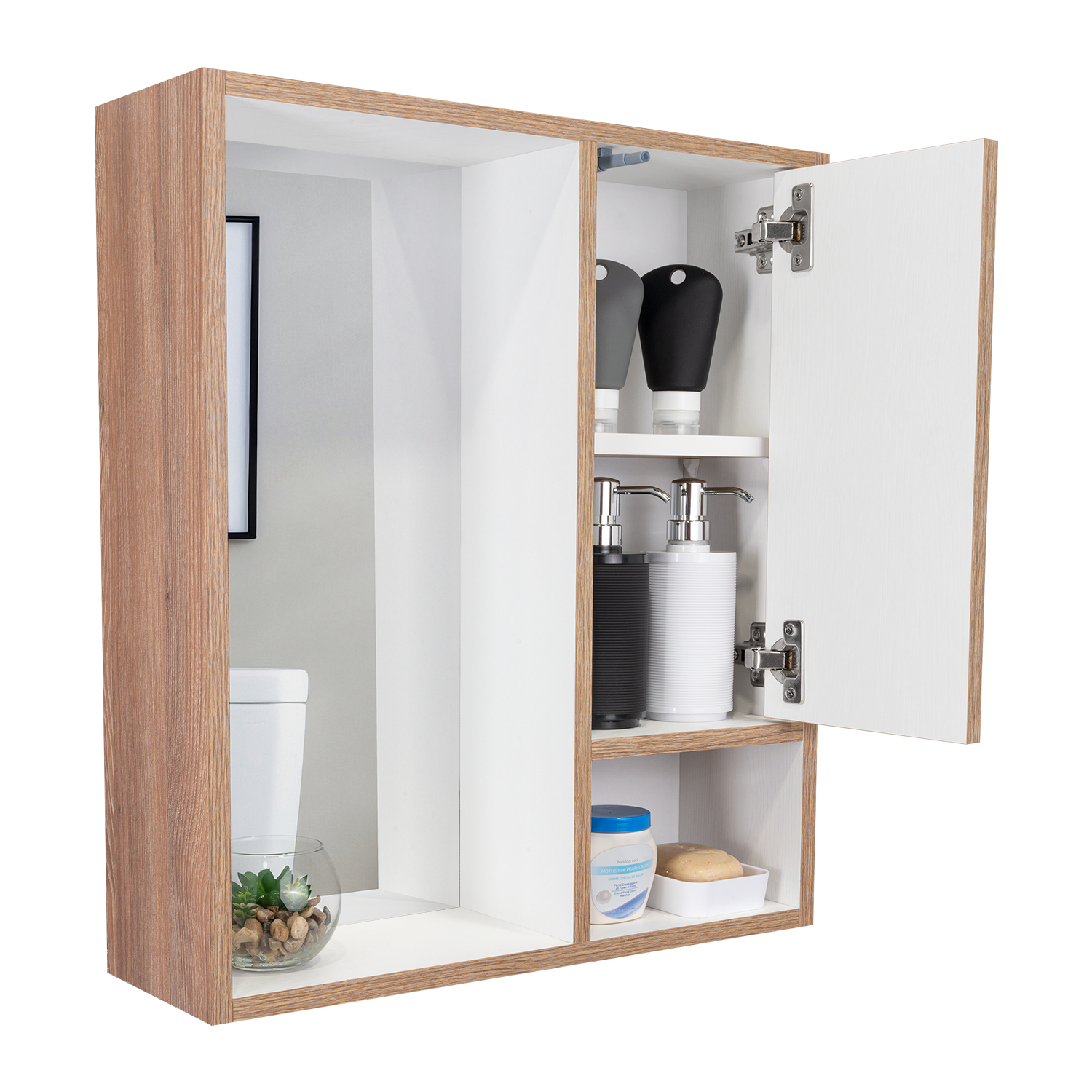 Botiquin Para Baño Con Espejo, Miel Y Blanco