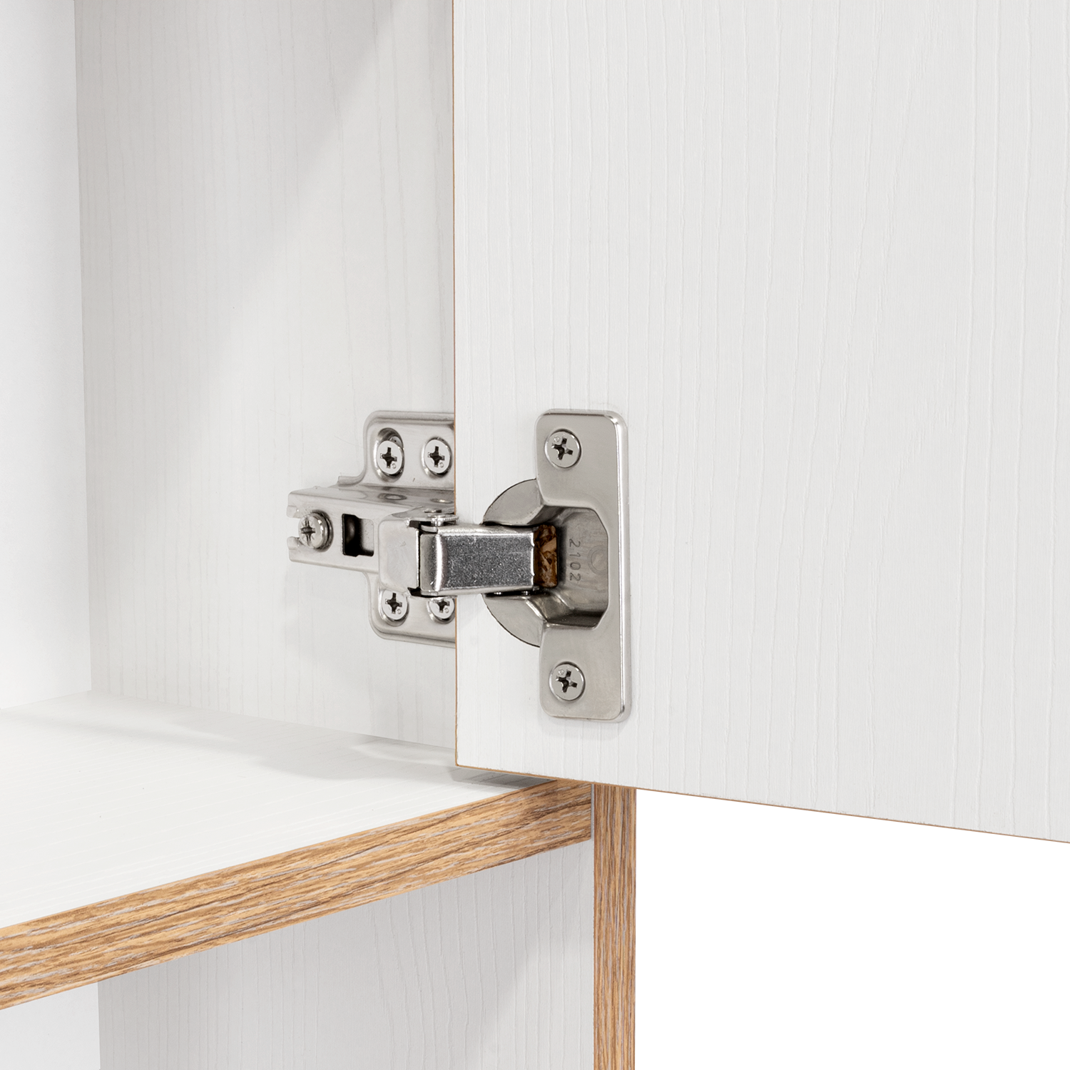 Elaborado en Madera aglomerada MDP, recubierta con láminas melamínicas de excelente calidad, en color Miel Y Blanco.