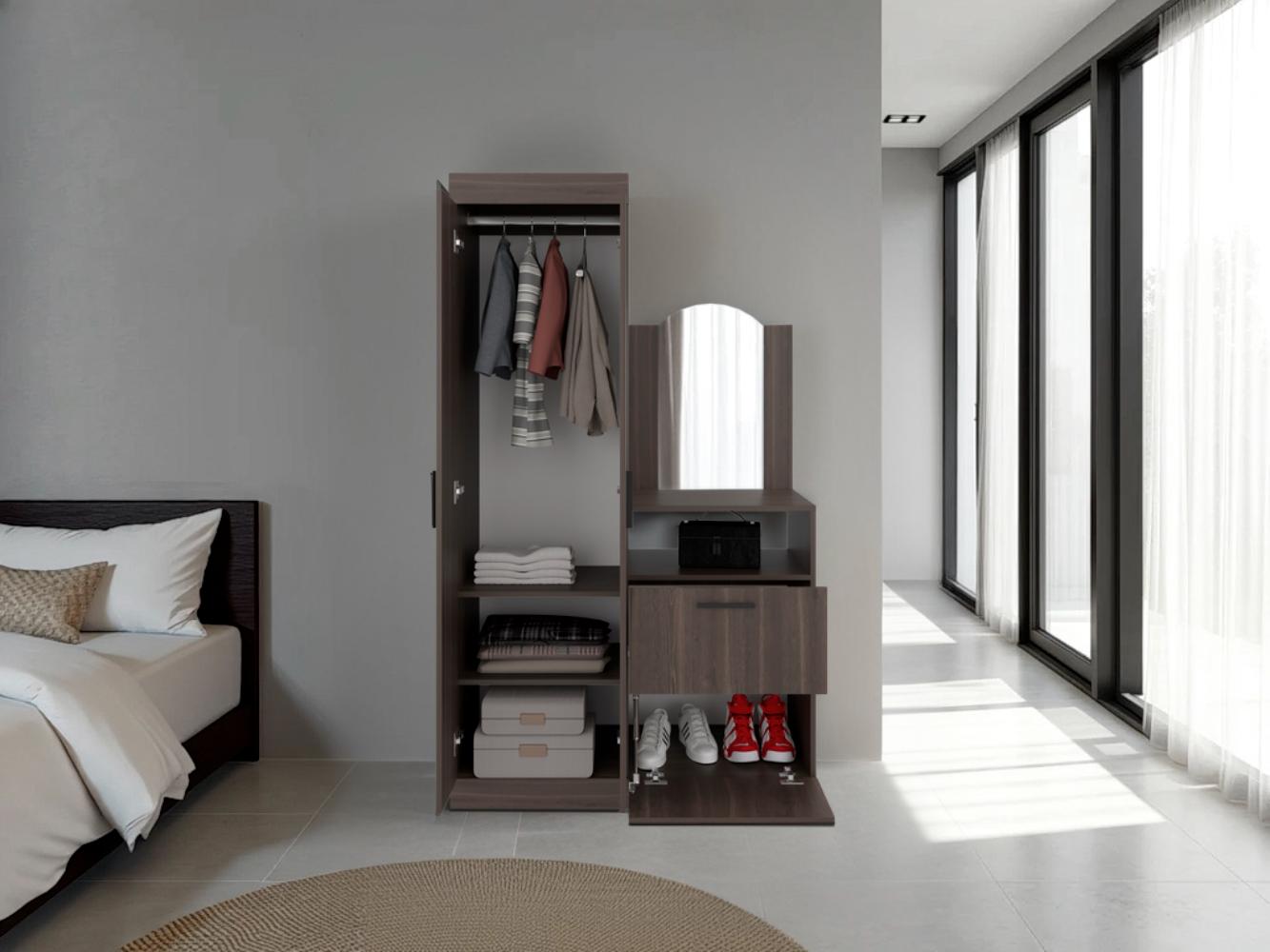 Closet, moderno moderno y unico, 3 puertas abatibles, colgador para ropa, 1 cajón e incluye espejo.