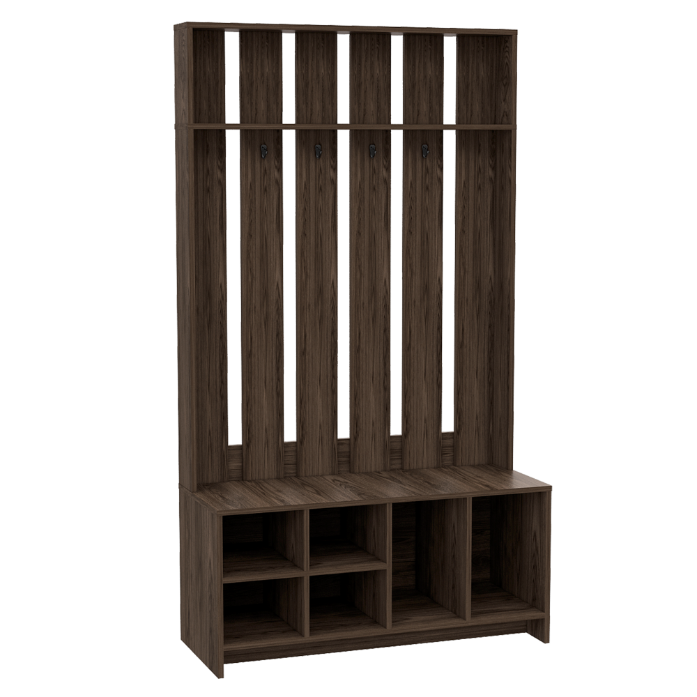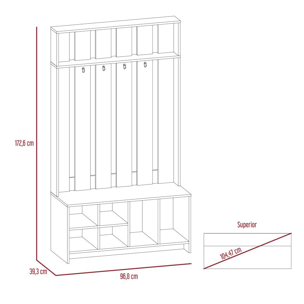 Recibidor, con múltiples entrepaños, repisas y colgadores de amplio espacio para colocar todo tipo de objetos.