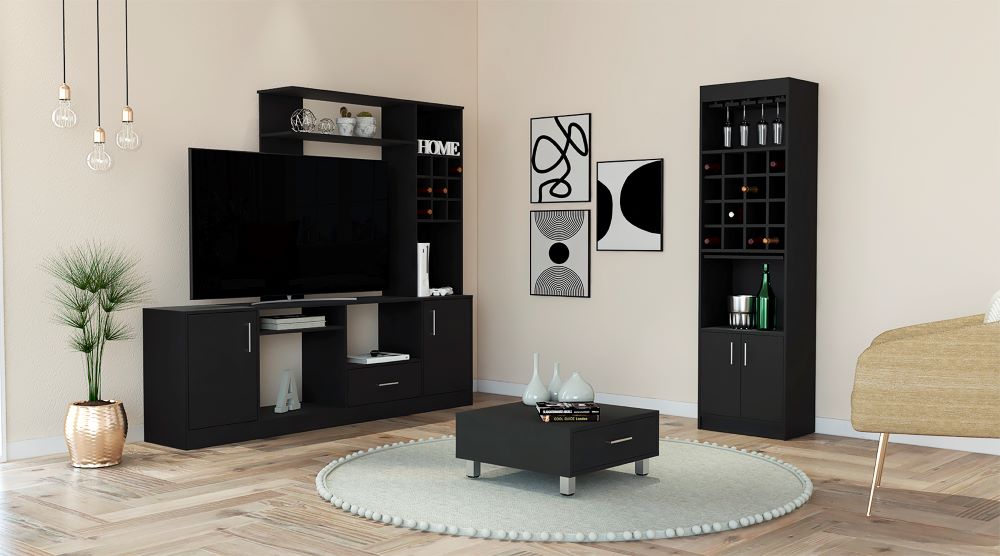 Combo Beijing, Wengue, incluye mesa de centro, centro de entretenimiento y bar