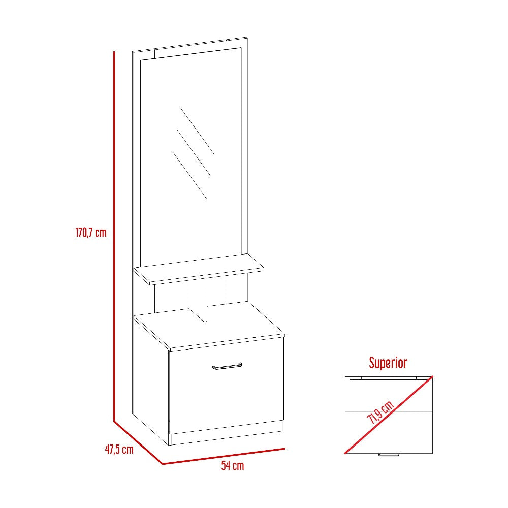 Velador, con 1 cajón de amplio espacio para guardar todo tipo de objetos y espejo incorporado.