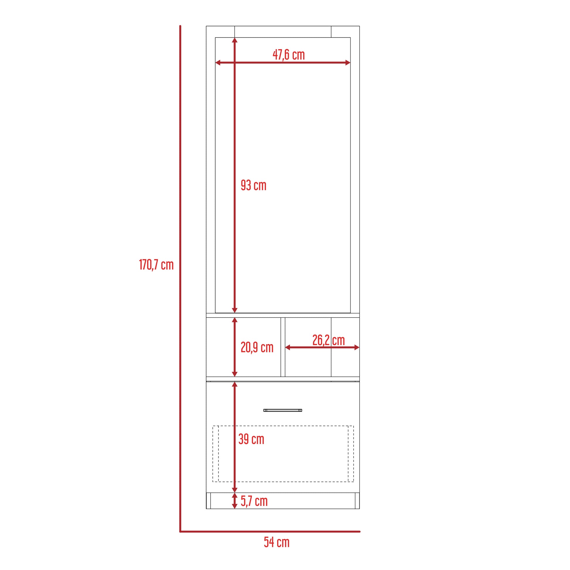 Closet, con 2 puertas batientes y 5 entrepaños de amplio espacio para colocar todo tipo de objetos