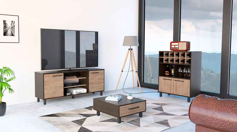 Combo Kaia, Wengue y Miel, incluye rack TV, bar y mesa centro