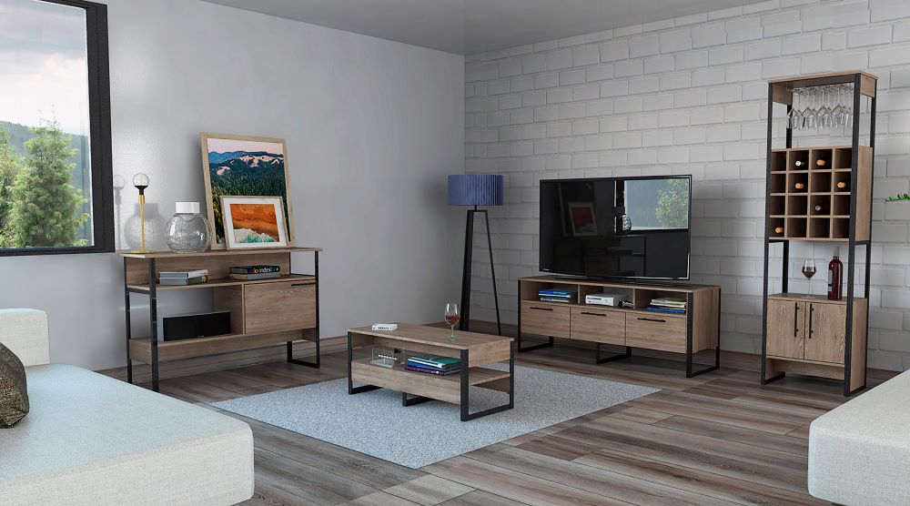 Combo Magnum, Miel, incluye rack TV, bar, arrimo y mesa centro