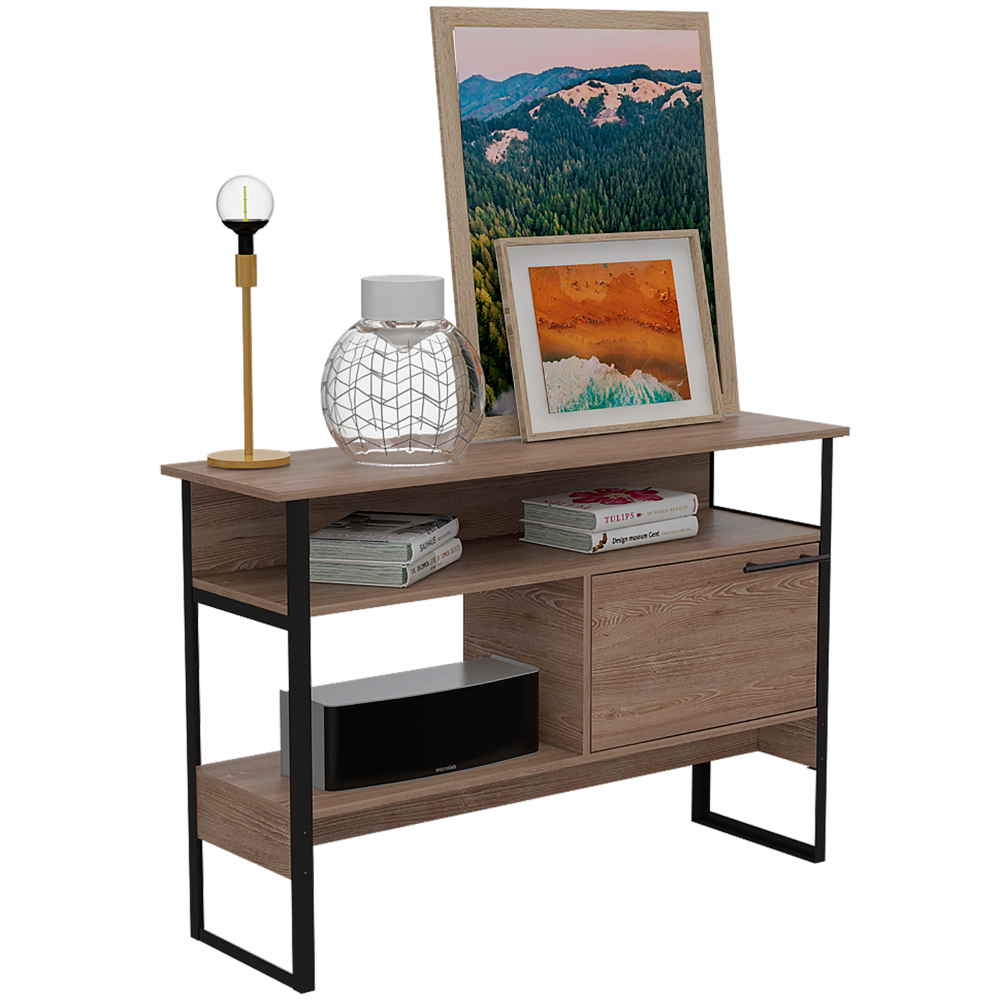 Arrimo, con una puerta batiente, dos entrepaños y patas en acero negras