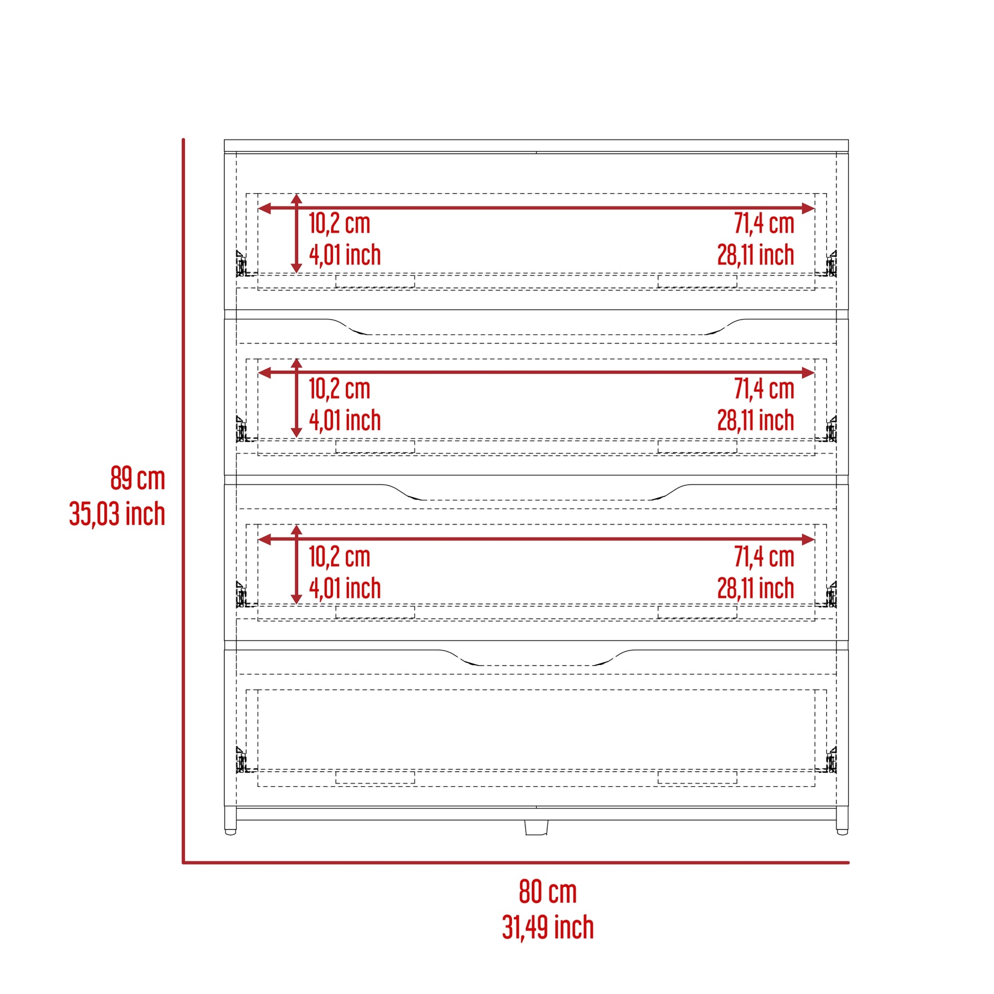 Comoda Cuatro Cajones, FM Furniture 016B, Blanco Y Cafe Claro