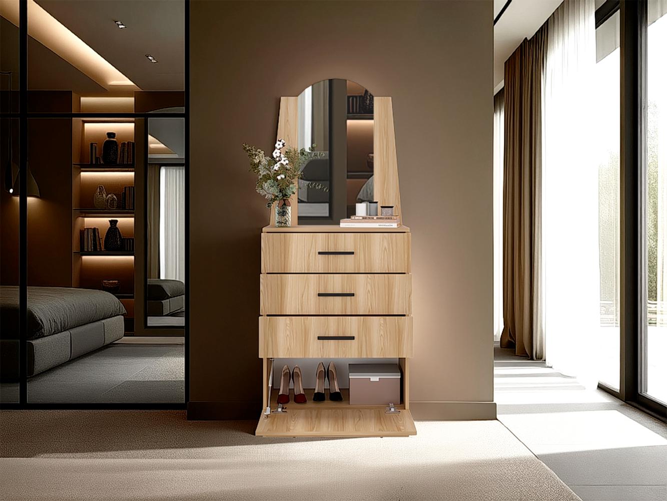 Comoda Praga, Fresno Europeo, con tres cajones y una puerta