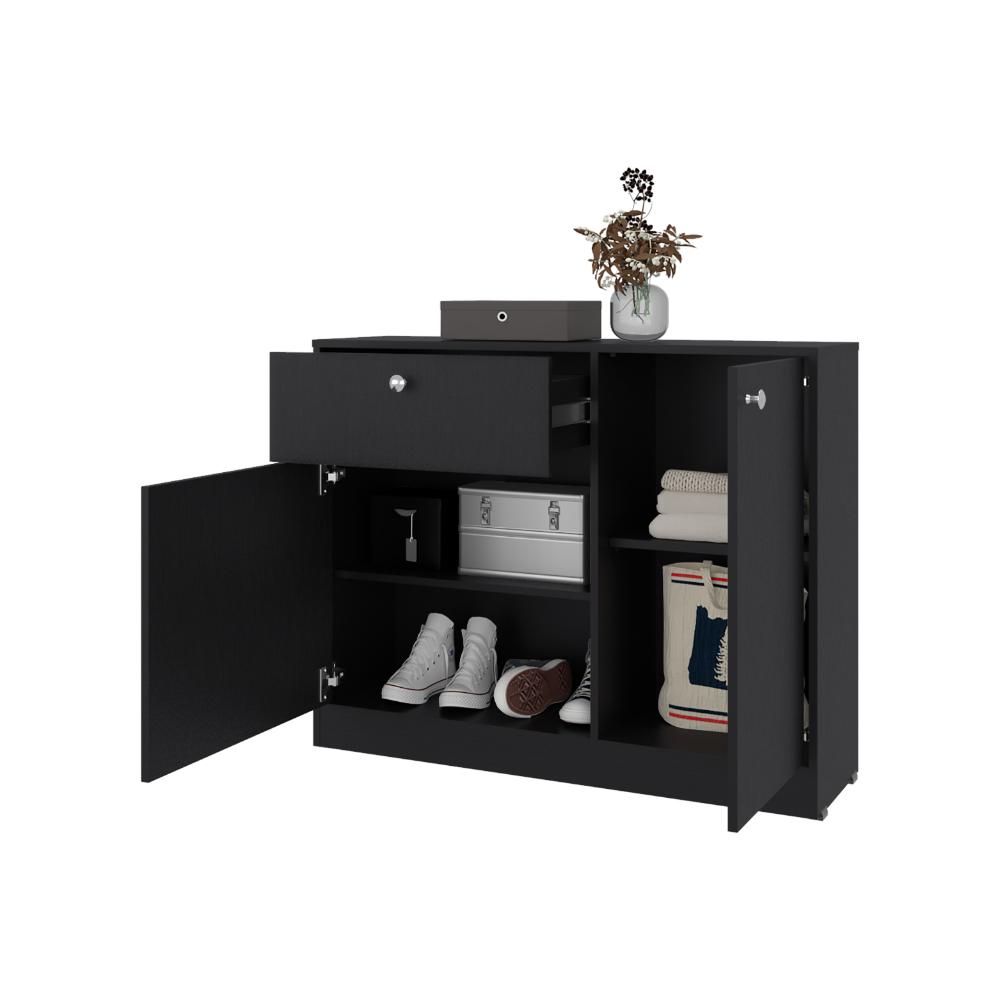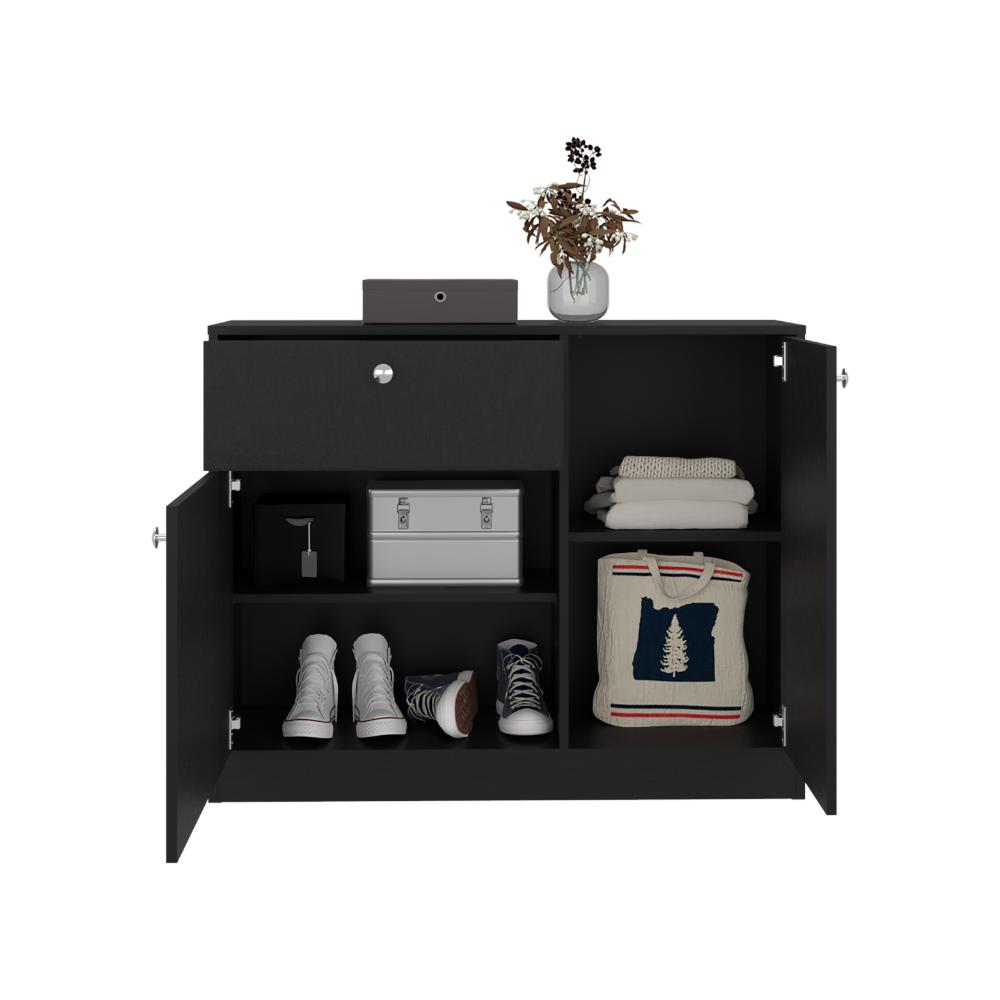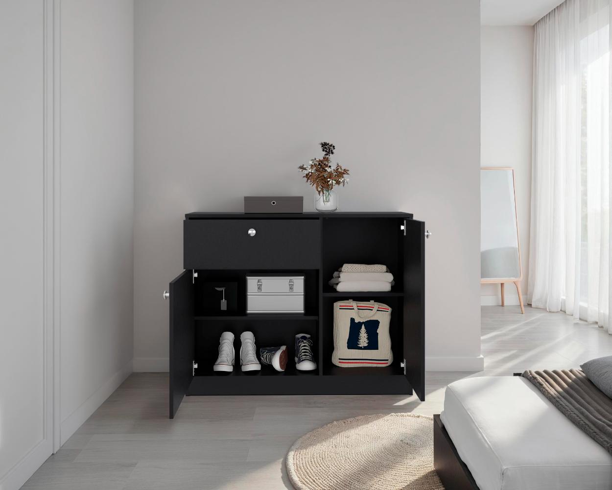 Organizador, cuanta con 2 puertas abatibles, 1 cajon multiusos, 2 entrepaños divisores, deslizadores en U para una facil movilidad, espacio para ubicar objetos, y es de facil instalatación.