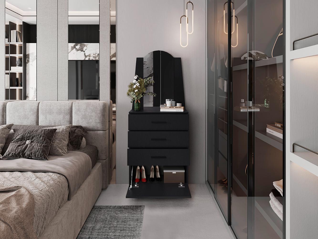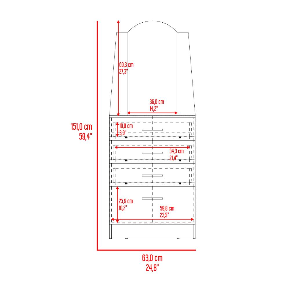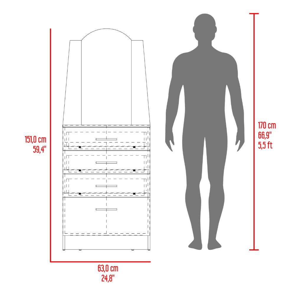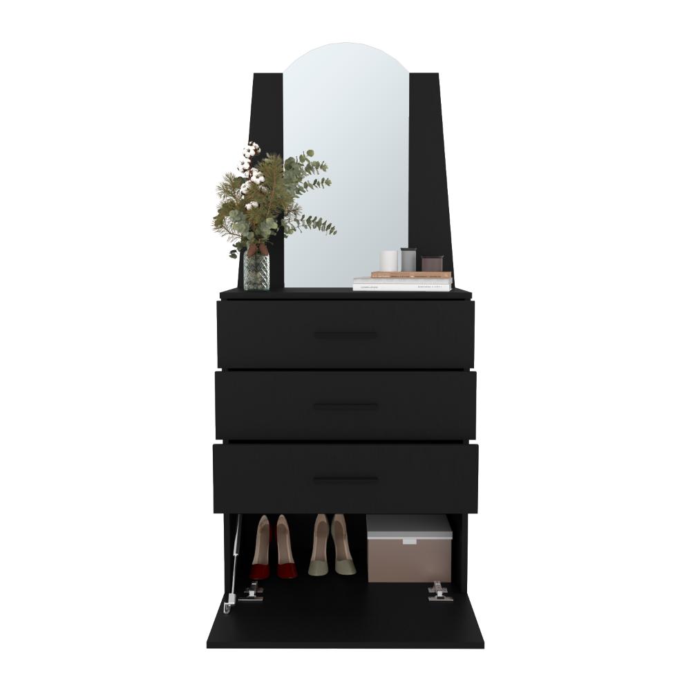 Comoda, cuenta con 3 cajones y 1 puerta, manija metalica, incluye espejo y es de facil instalación.
