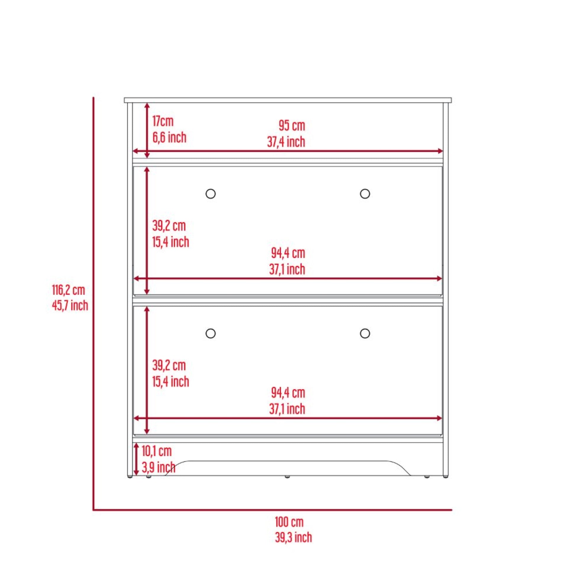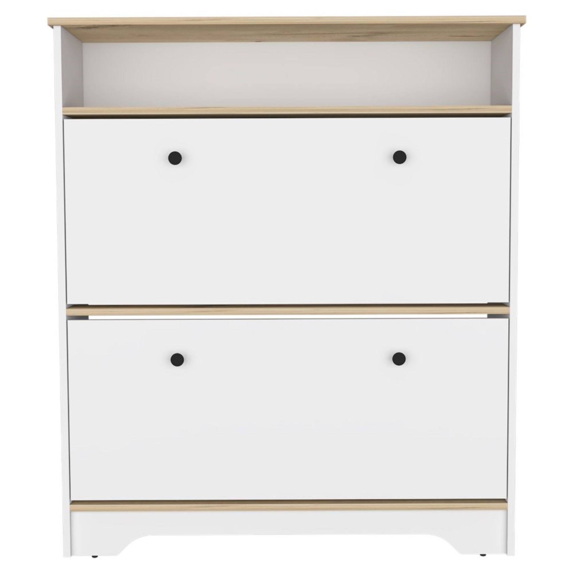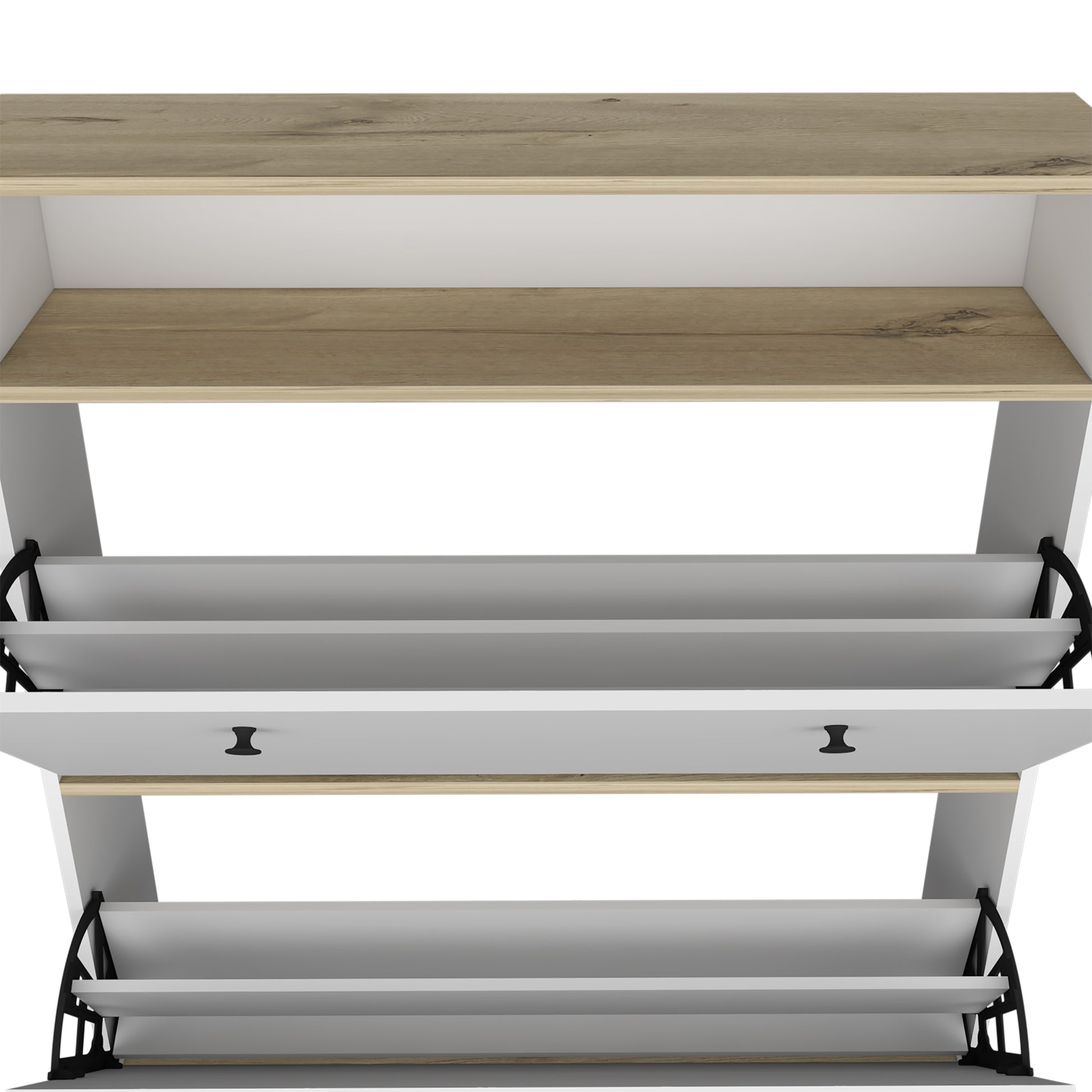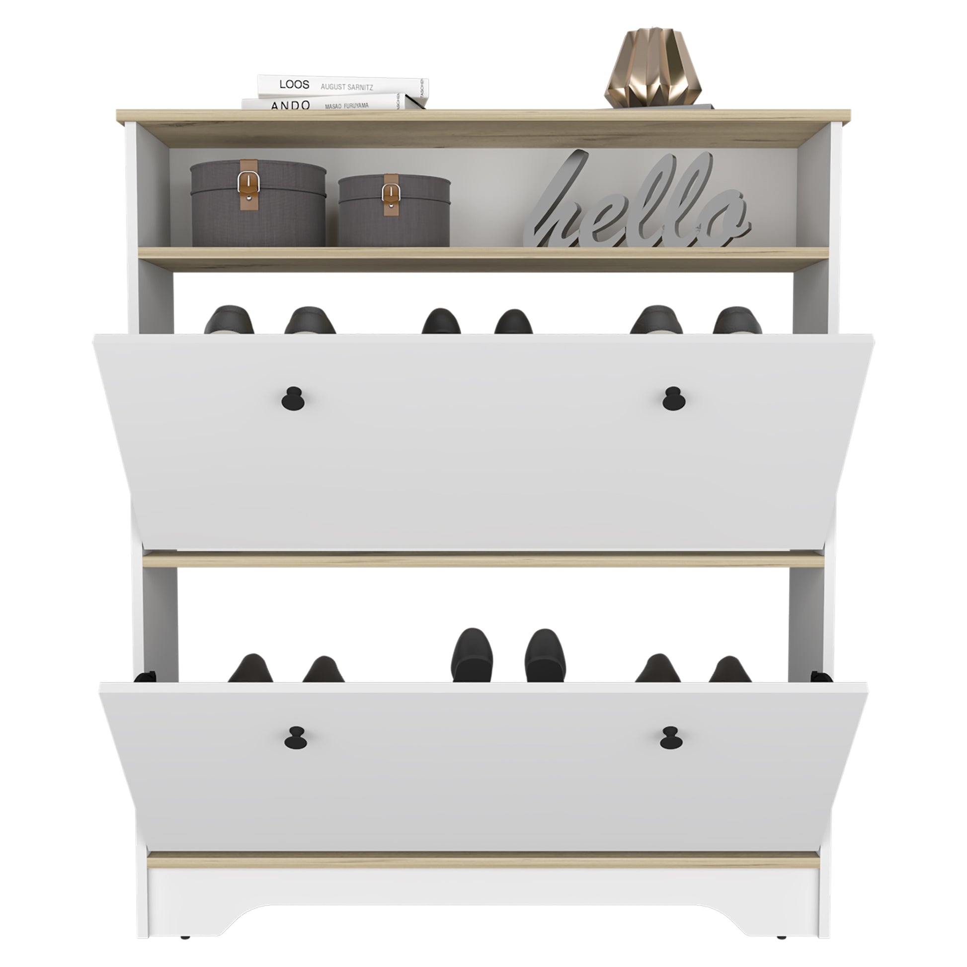 Comoda Zapatero Dos Puertas, FM Furniture 017B, Blanco Y Cafe Claro