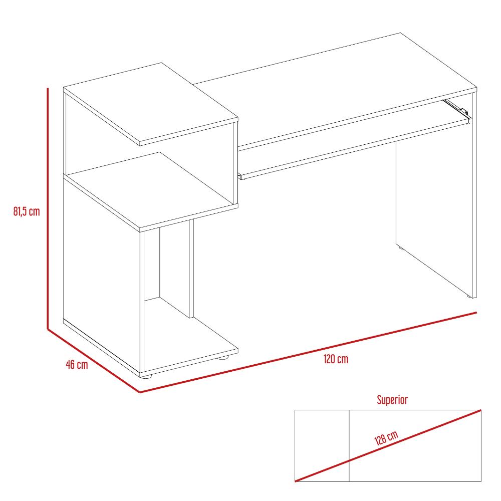 Escritorio Atlanter, Rovere y Blanco, con Bandeja Porta Teclado Deslizable y Espacio Para Artículos de Estudio