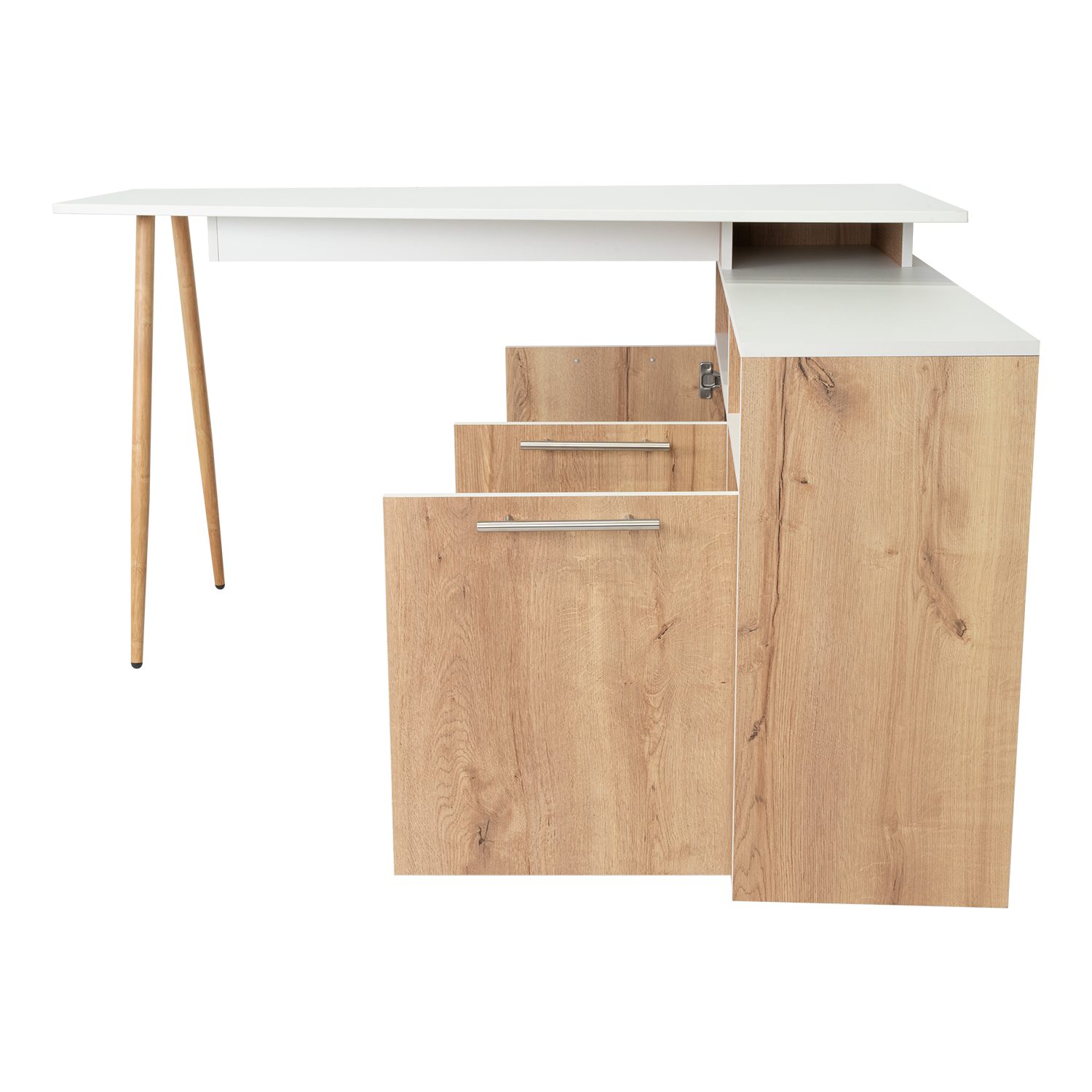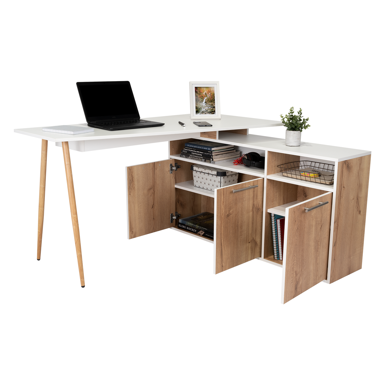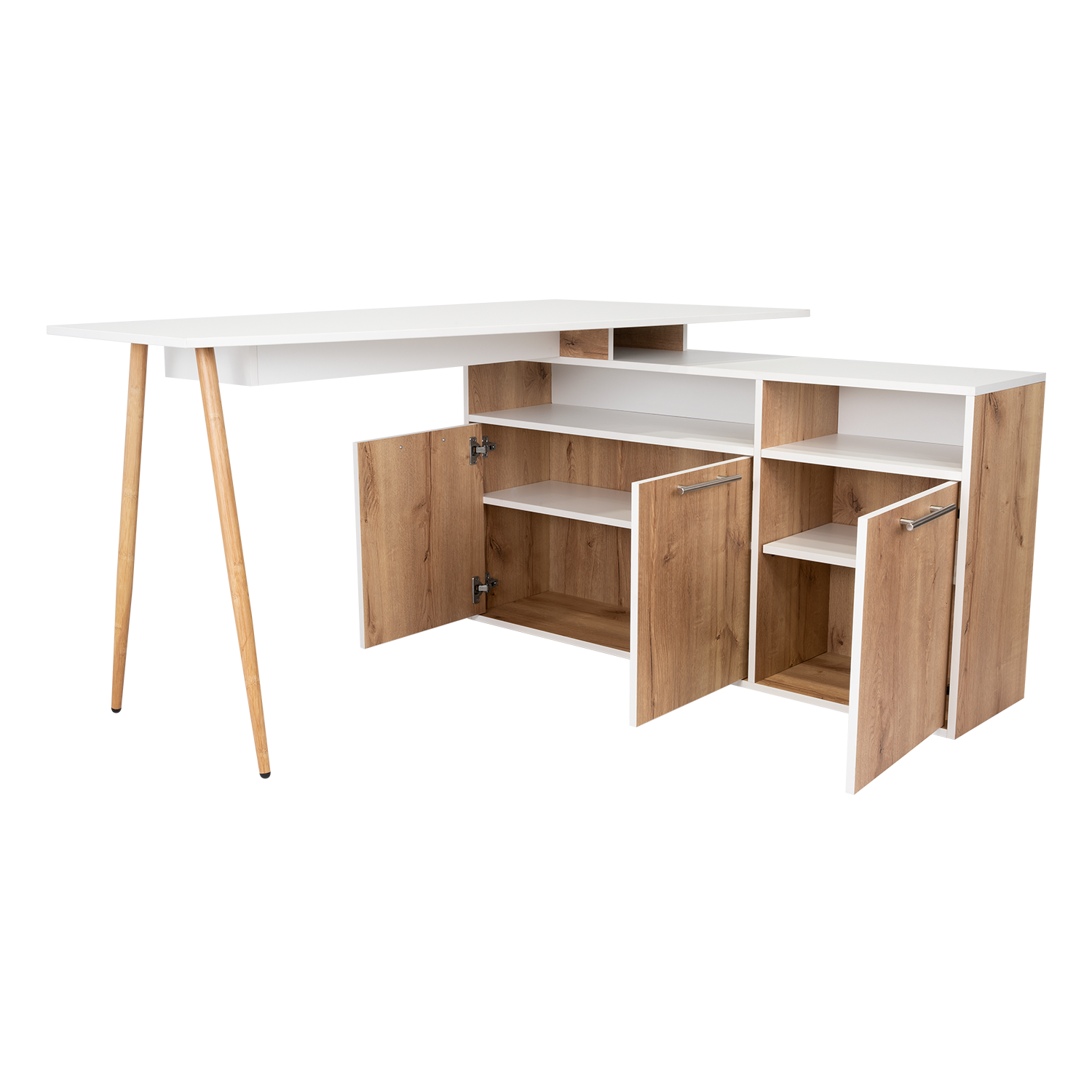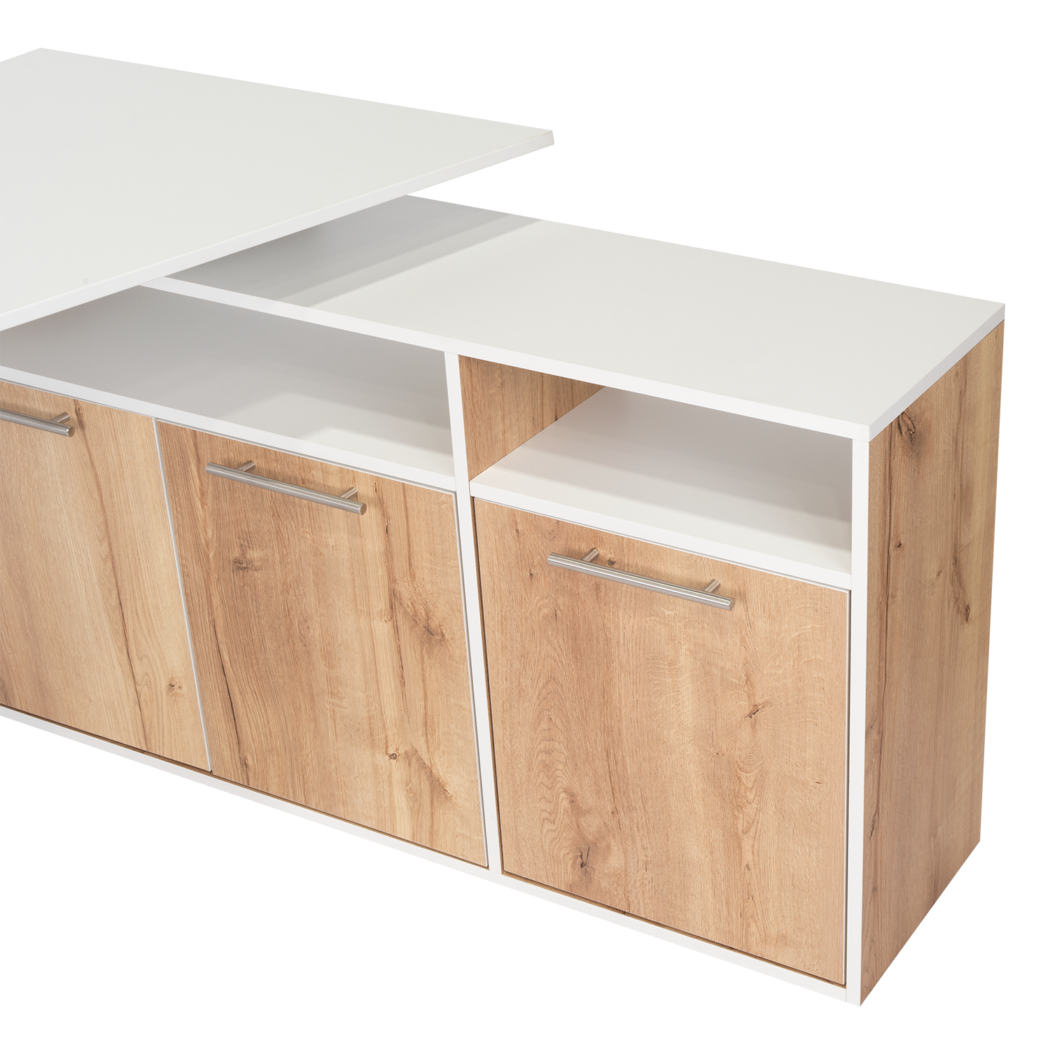 Escritorio En L Singapur, Café Claro y Blanco, con Tres Puertas Batientes