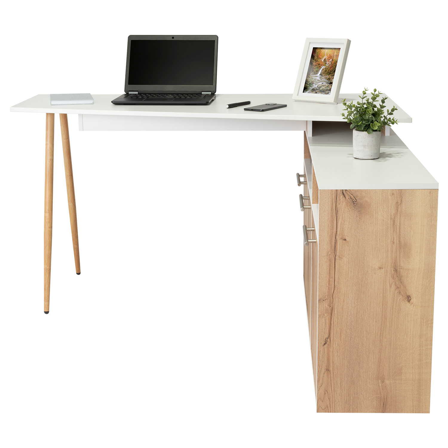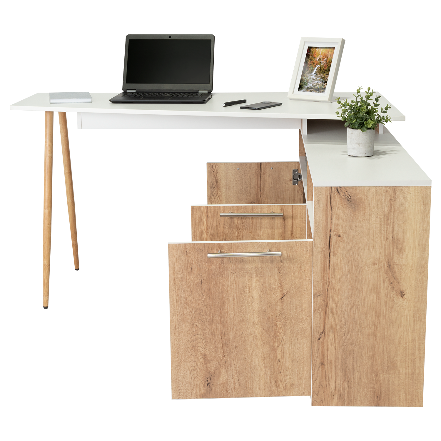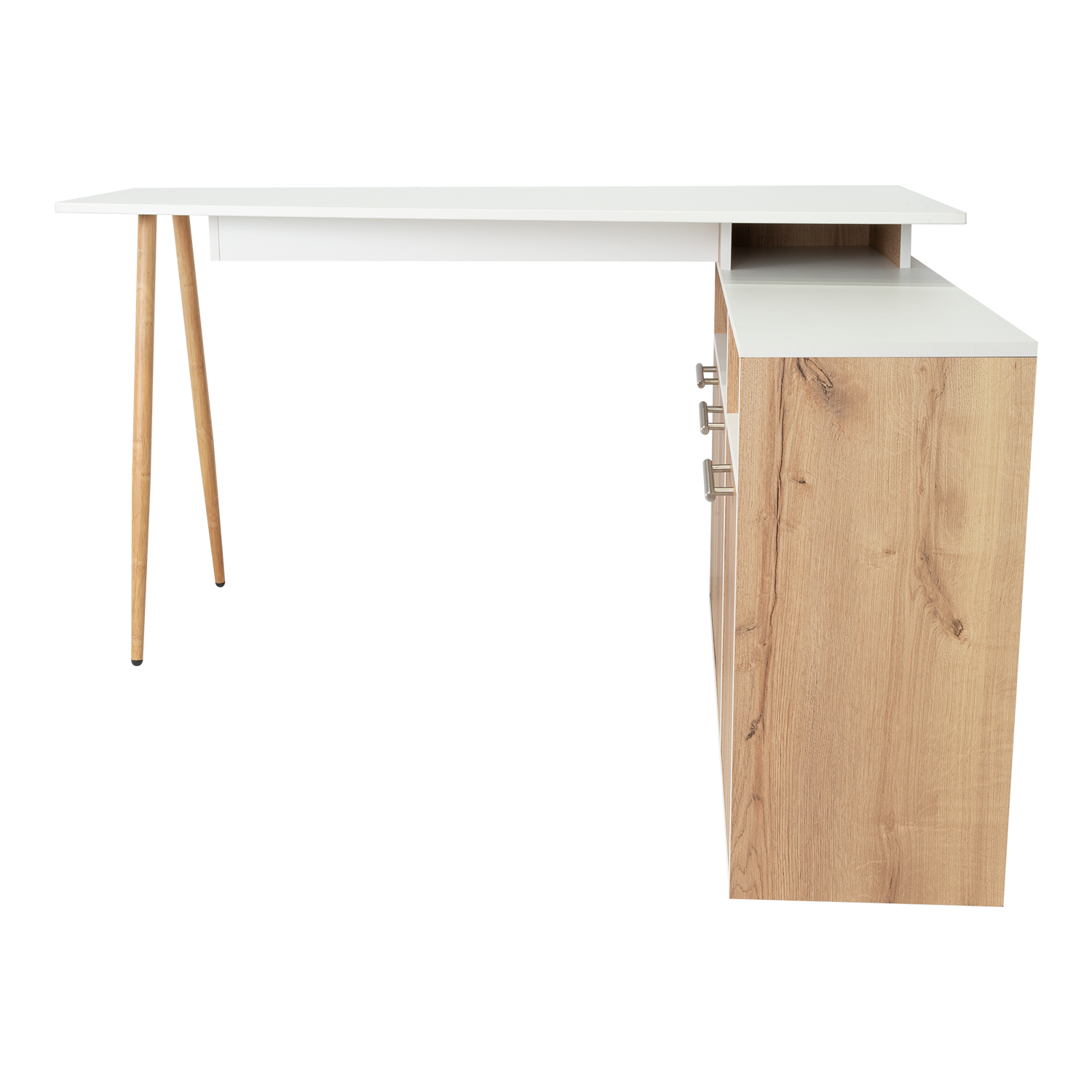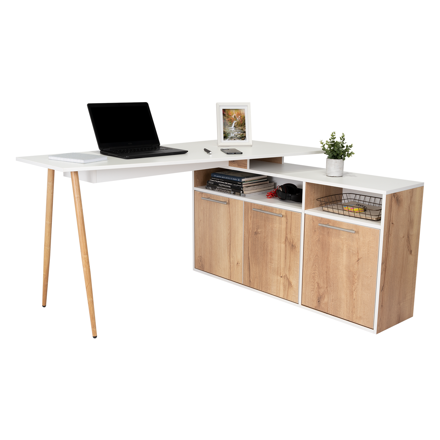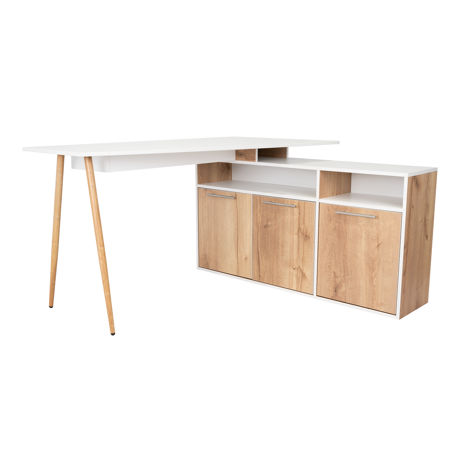 Escritorio En L Singapur, Café Claro y Blanco, con Tres Puertas Batientes