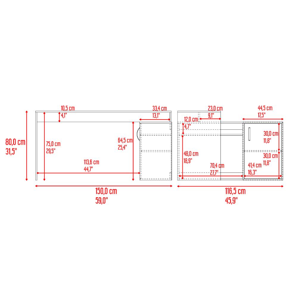 Elaborado en Madera aglomerada MDP, recubierta con láminas melamínicas de excelente calidad, en color Wengue y Blanco.