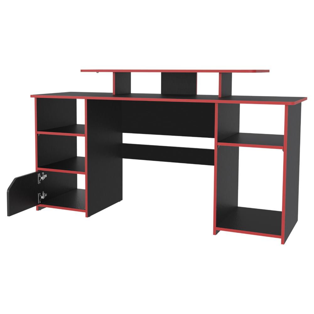 Escritorio Gamer, con espacio para diferentes equipos, borde Rojo y diseño moderno.