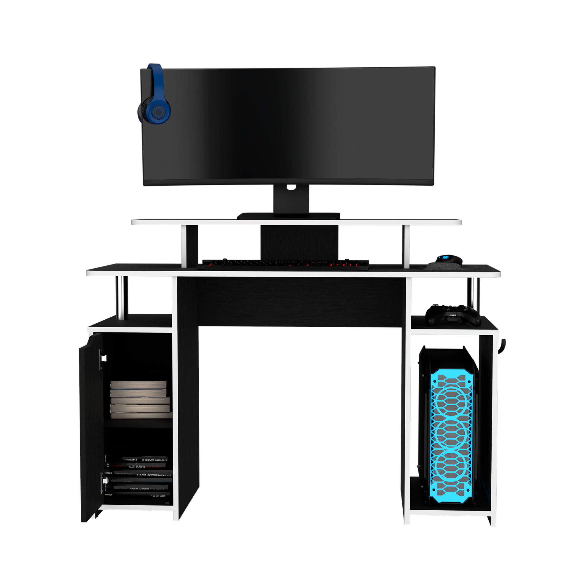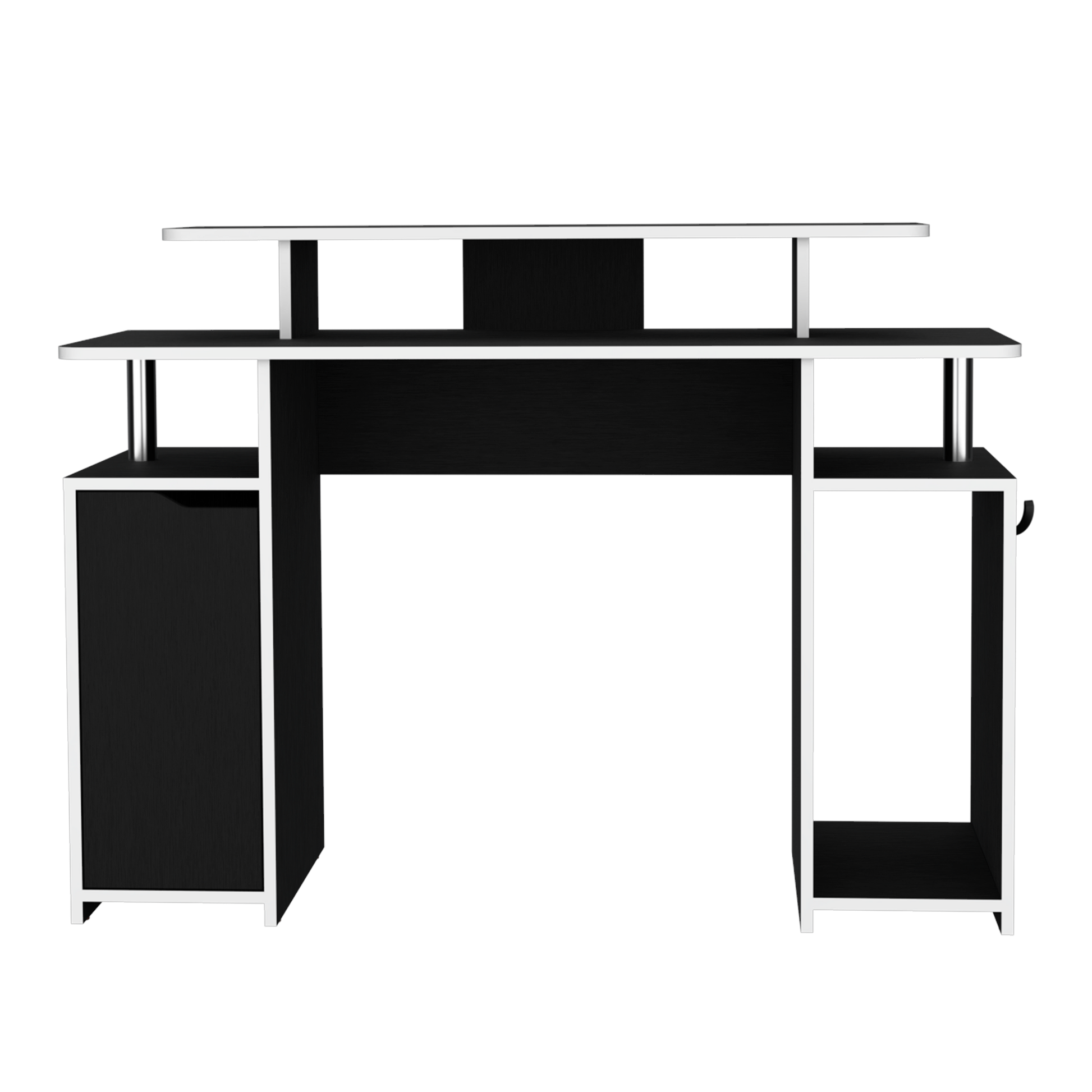 Escritorio Gamer Keria Lite, Color Negro Y Canto Blanco