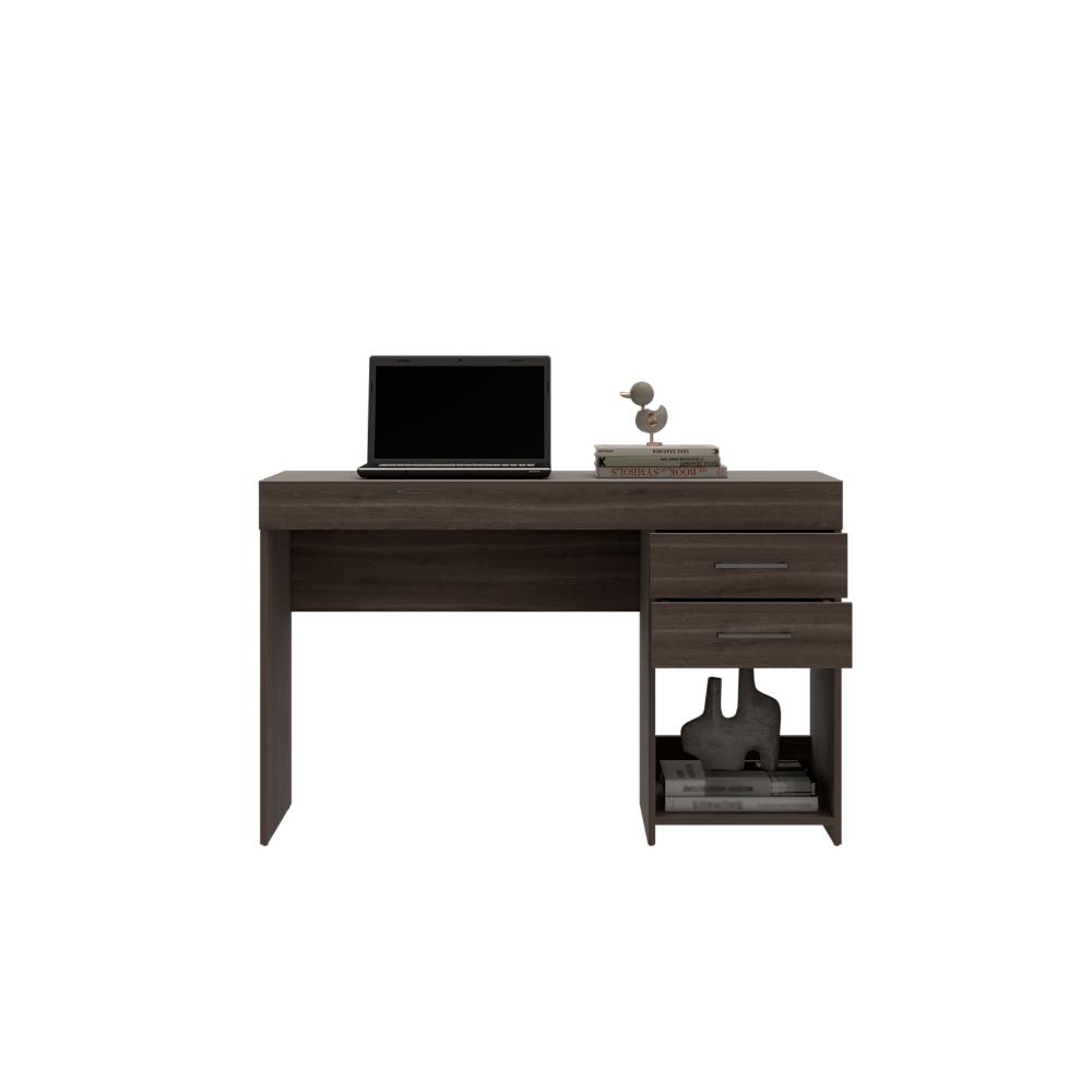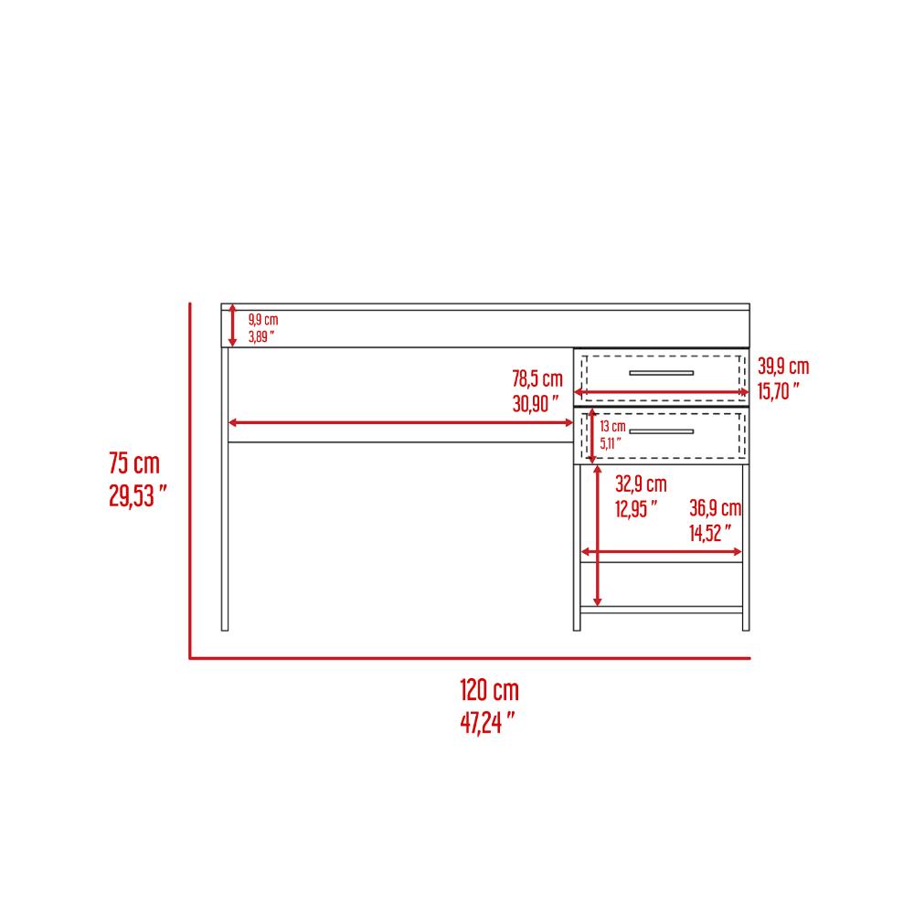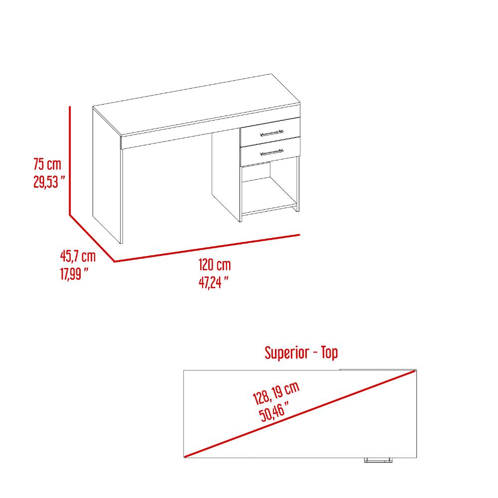 Escritorio , con 2 cajones multiusos de correderas metálicas deslizables, y espacio para artículos de estudio, trabajo o entretenimiento, amplia superficie para trabajar.