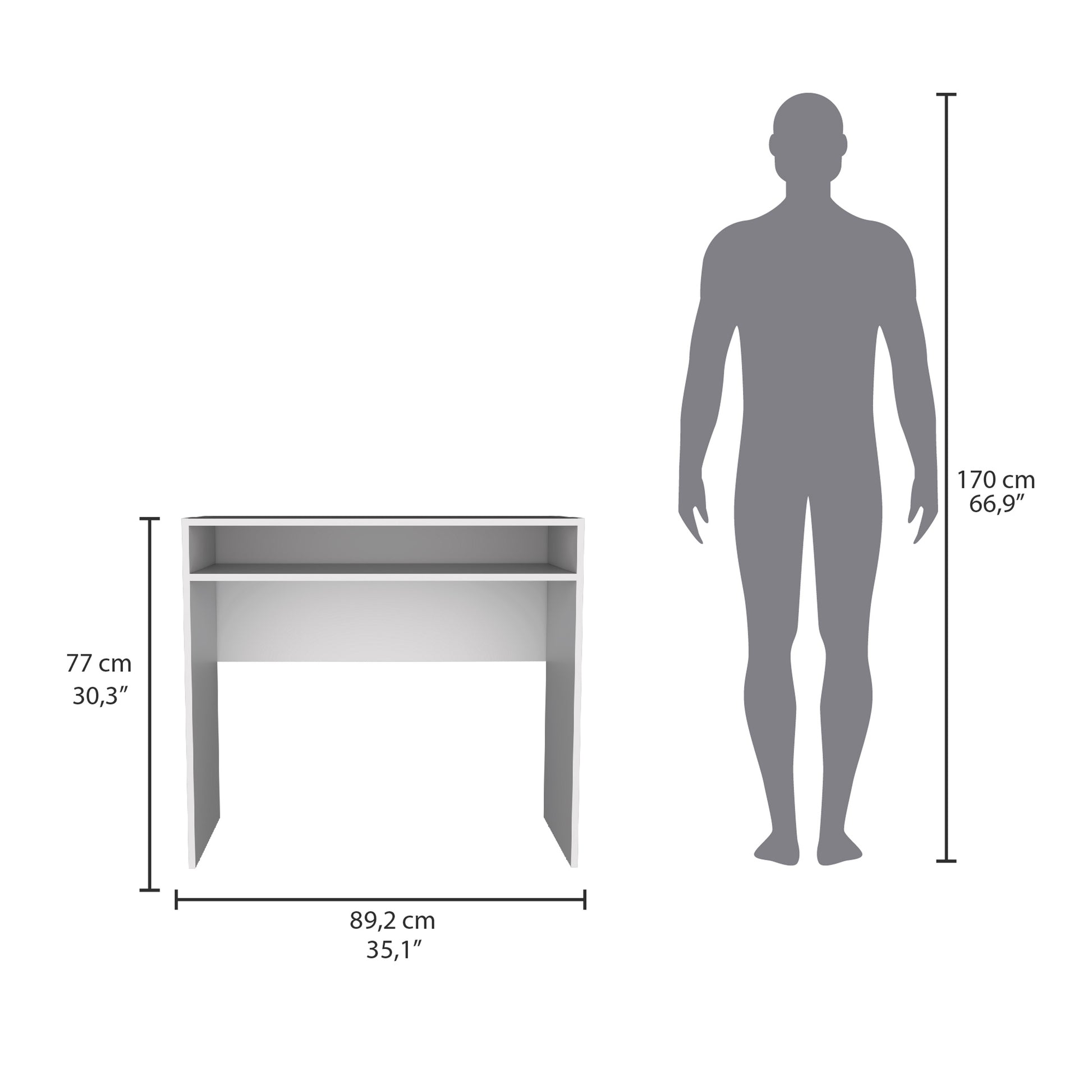 Escritorio Stella, Blanco, Con Una Repisa Y Amplio Espacio De Trabajo