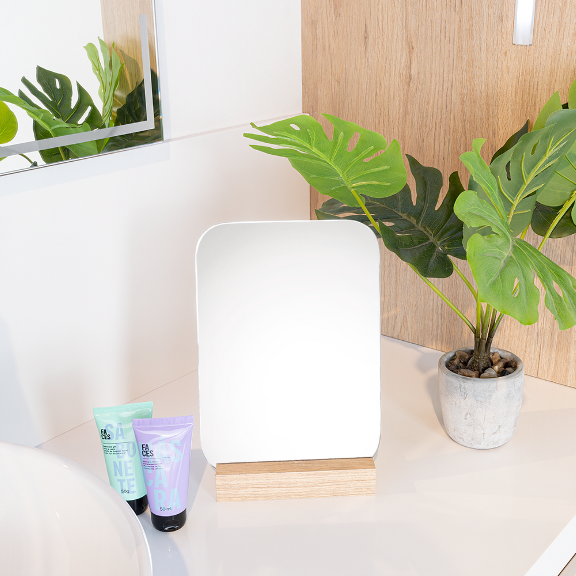 Espejo Bass, con Forma Recto, Borde Redondo, Base Madera