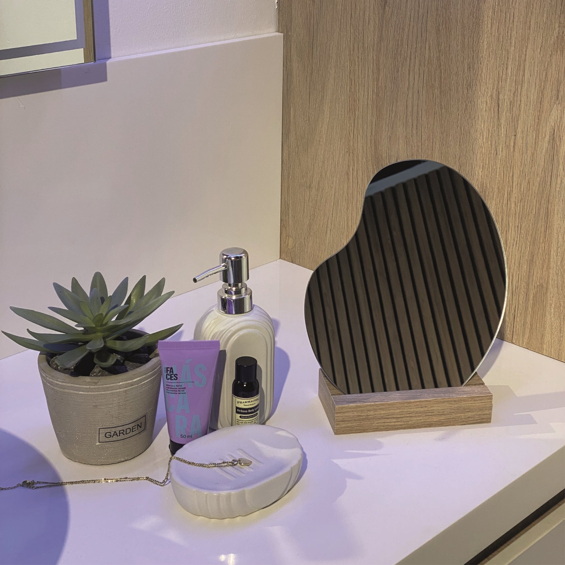 Espejo Bean, con Forma Semi Circular, Base Madera
