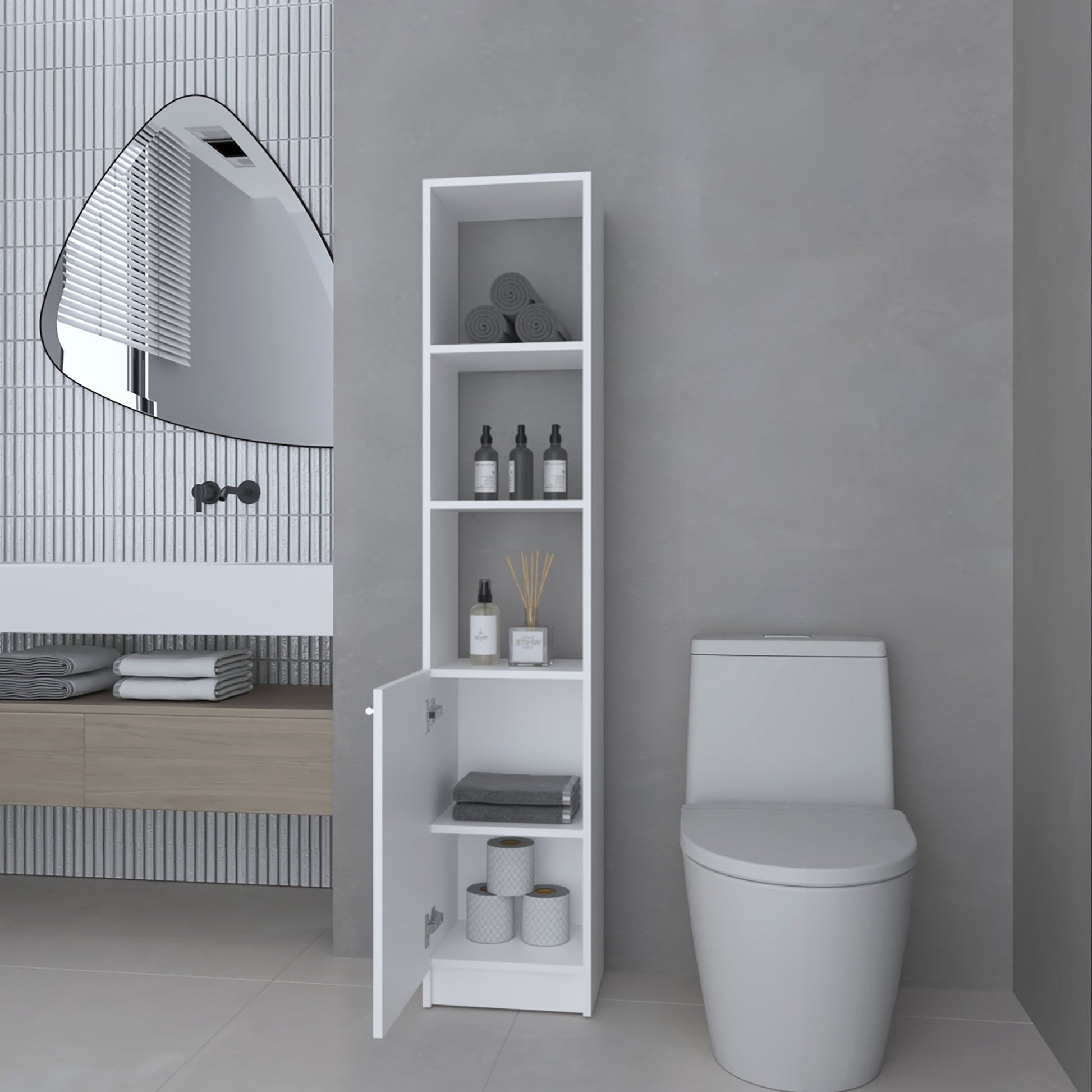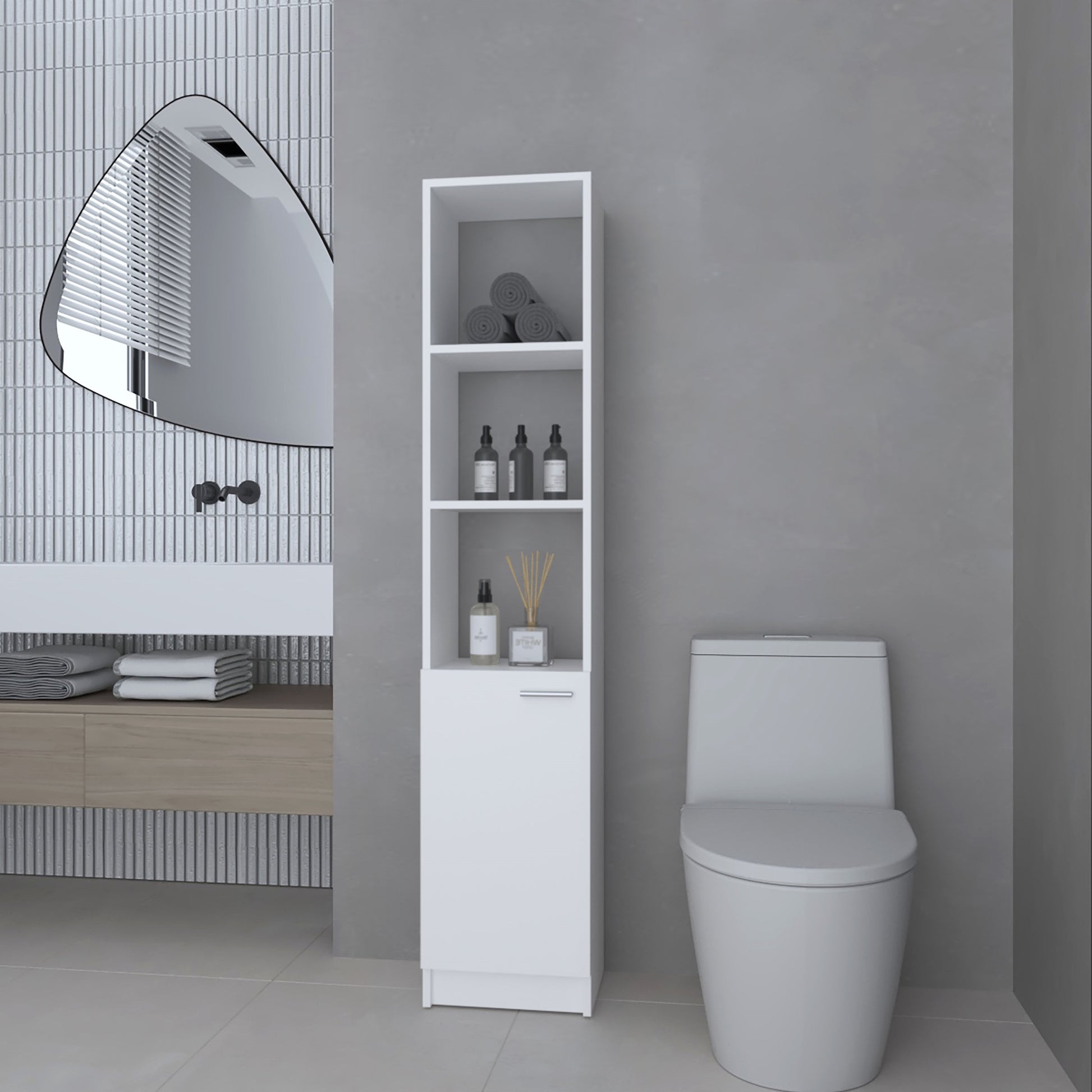 Estante Organizador Baño Una Puerta , FM Furniture, Blanco