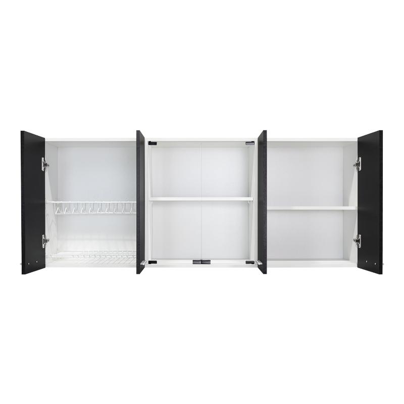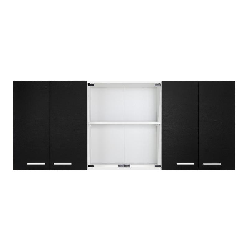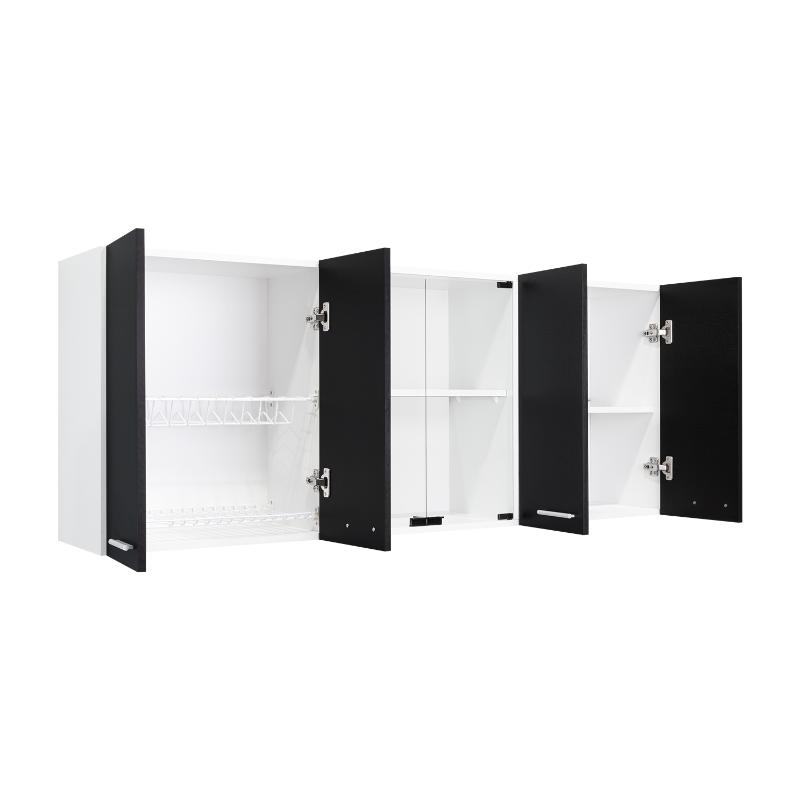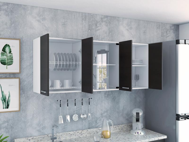 Gabinete Superior, con amplios espacios para guardar utensilios de cocina o alimentos, 4 puertas abatibles, manijas metálicas, entrepaño móvil central, e incluye dos puertas centrales de vidrio,