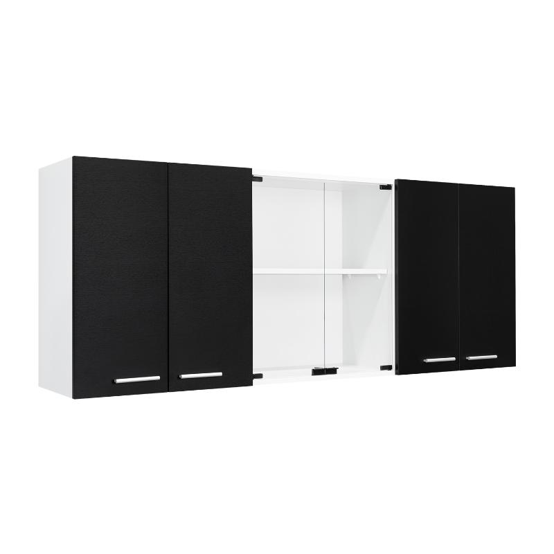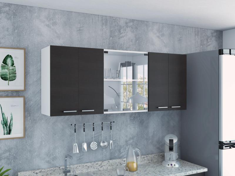 Gabinete Superior Mural, Blanco y Wengue, incluye entrepaño móvil central y dos puertas de vidrio