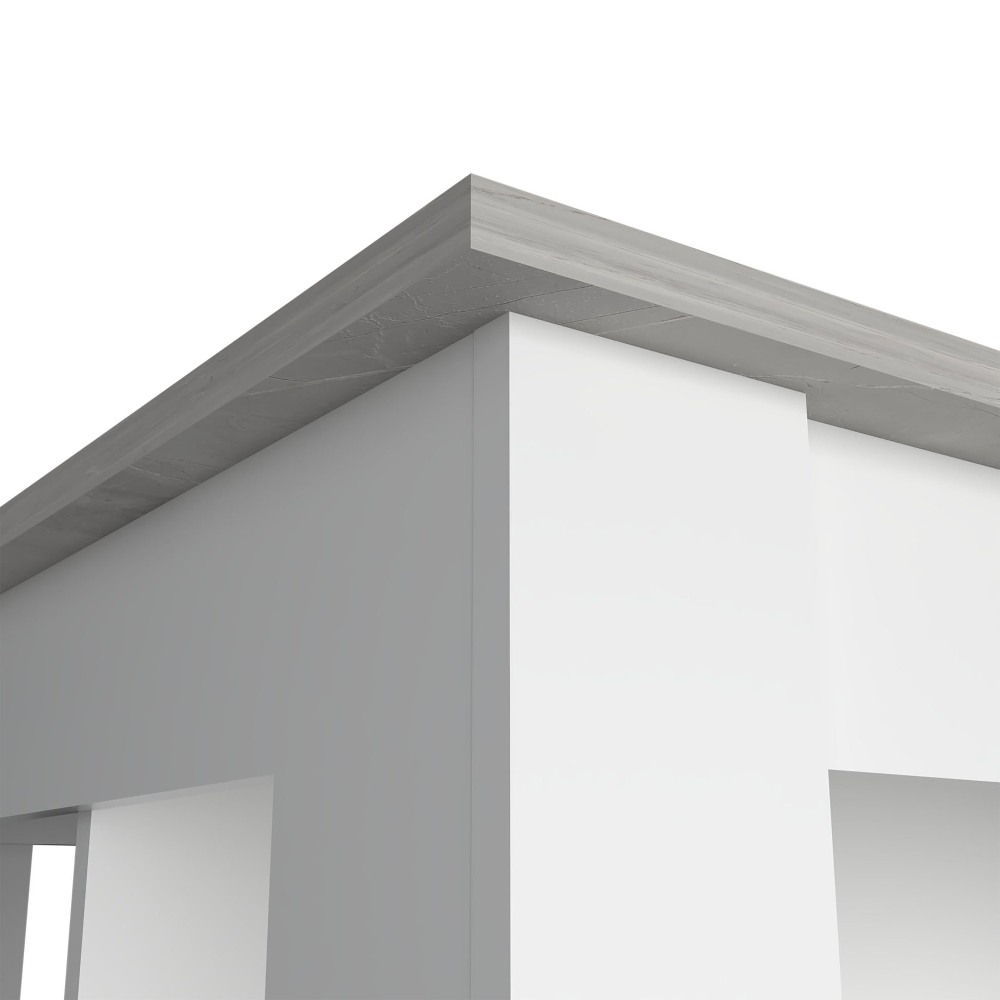 Elaborado en Madera aglomerada MDP, recubierta con láminas melamínicas de excelente calidad, en color Blanco Ibiza y Gris