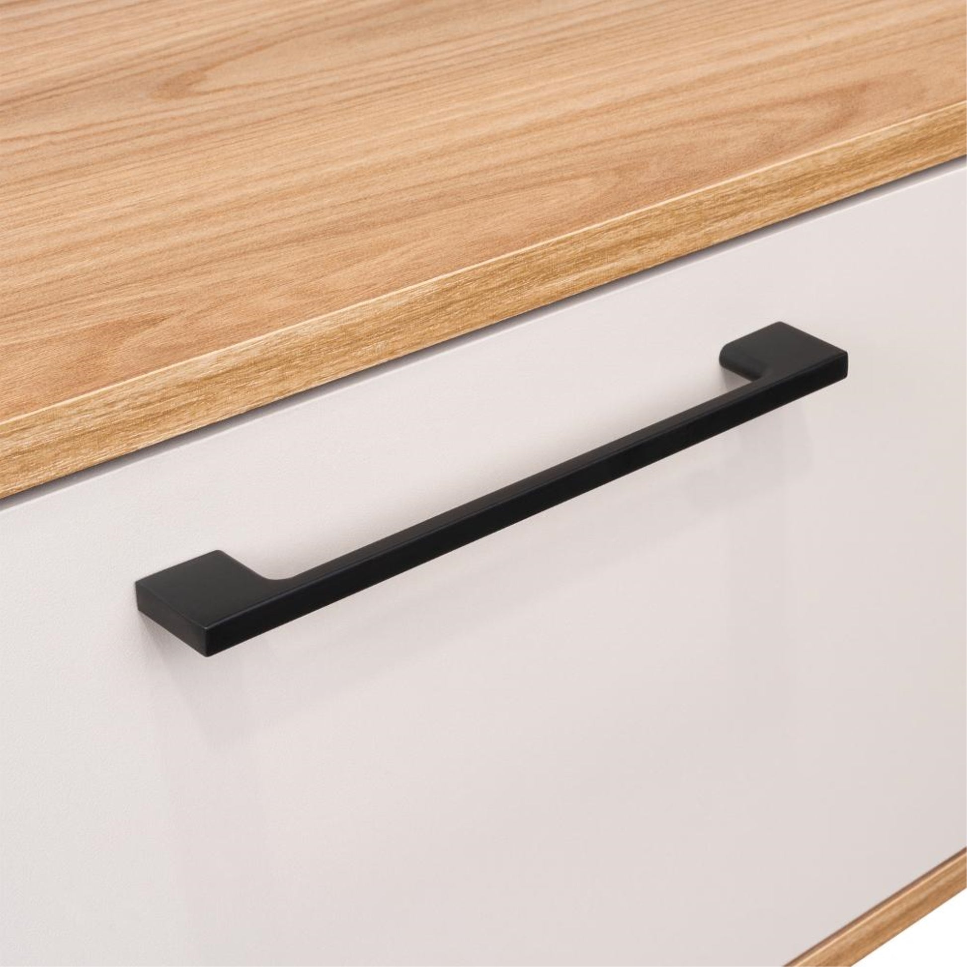 Elaborado en Madera aglomerada MDP, recubierta con láminas melamínicas de excelente calidad, en color Capri y Fresno Europeo.