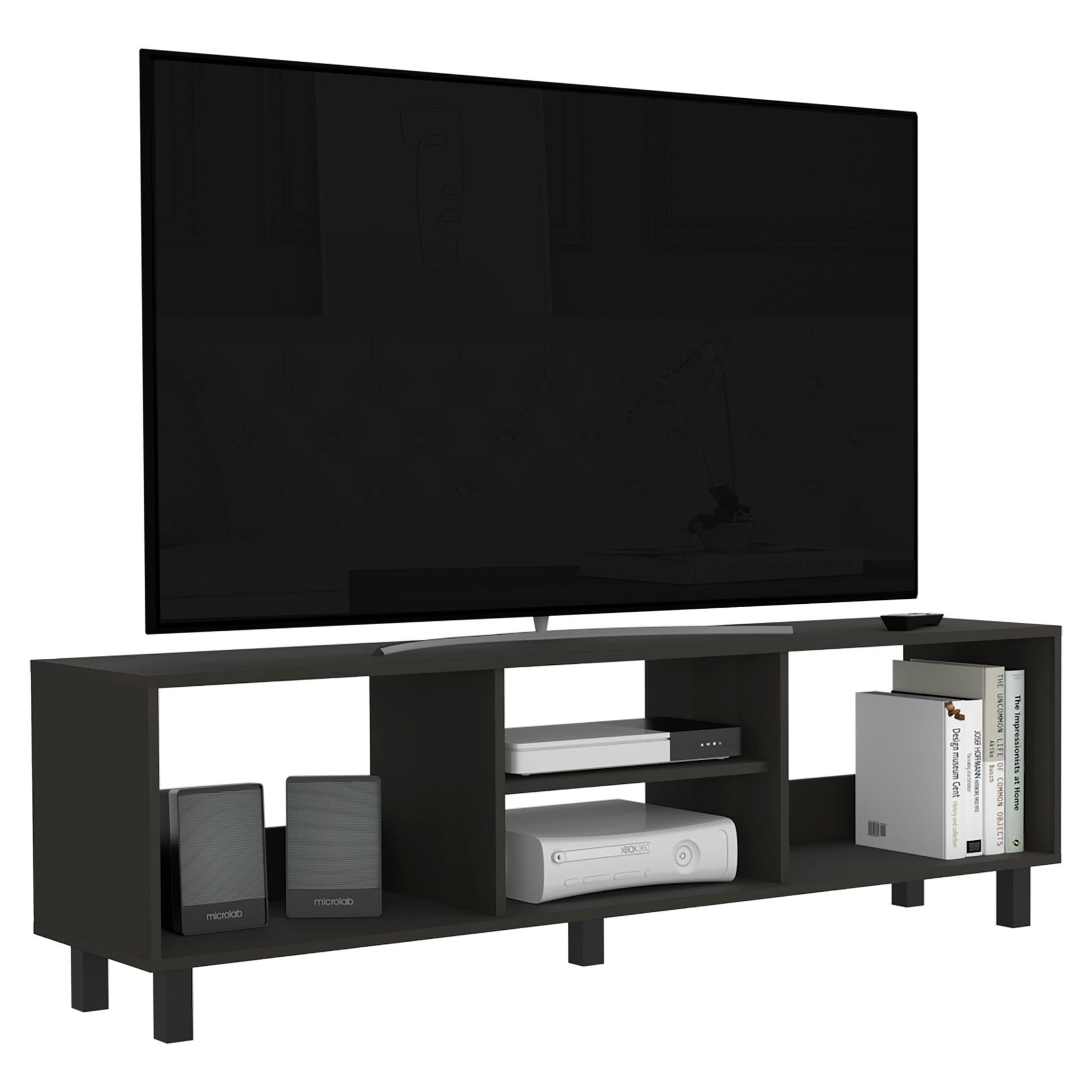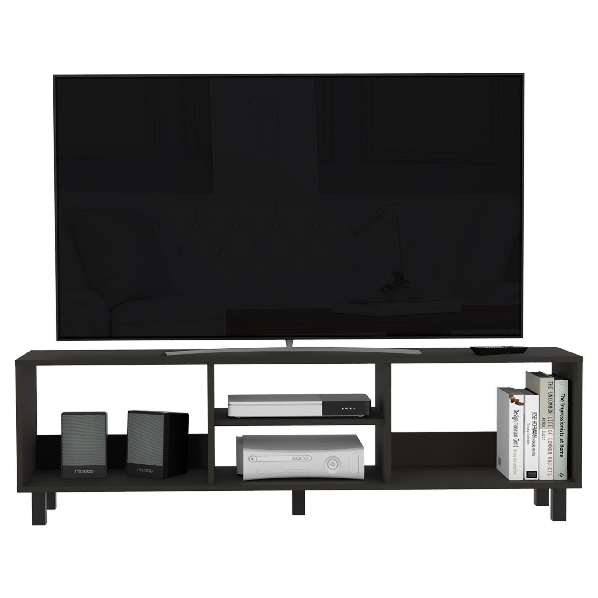 Además de soportar el TV, nuestras mesas las puedes usar para guardar y decorar tus espacios con libros, revistas, consolas, equipos de sonido, etc. Todo el entretenimiento en un solo lugar.