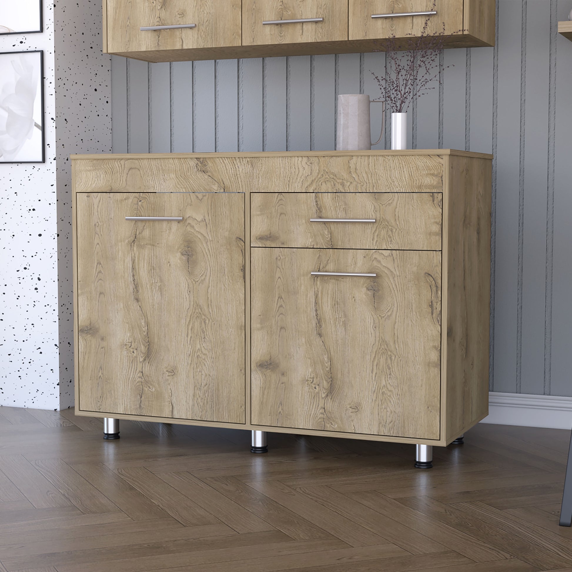 Módulo, con Top Melamina, 1 cajones deslizable, 2 puertas batientes, variedad de entrepaños, manijas, patas de metal.