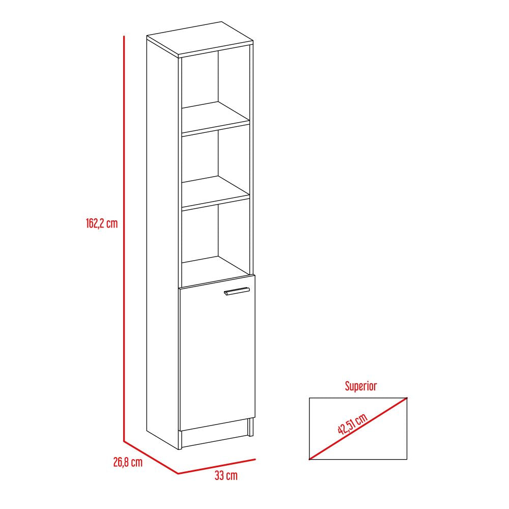 Optimizador, con 1 puerta batiente y varios entrepaños para colocar objetos de aseo.