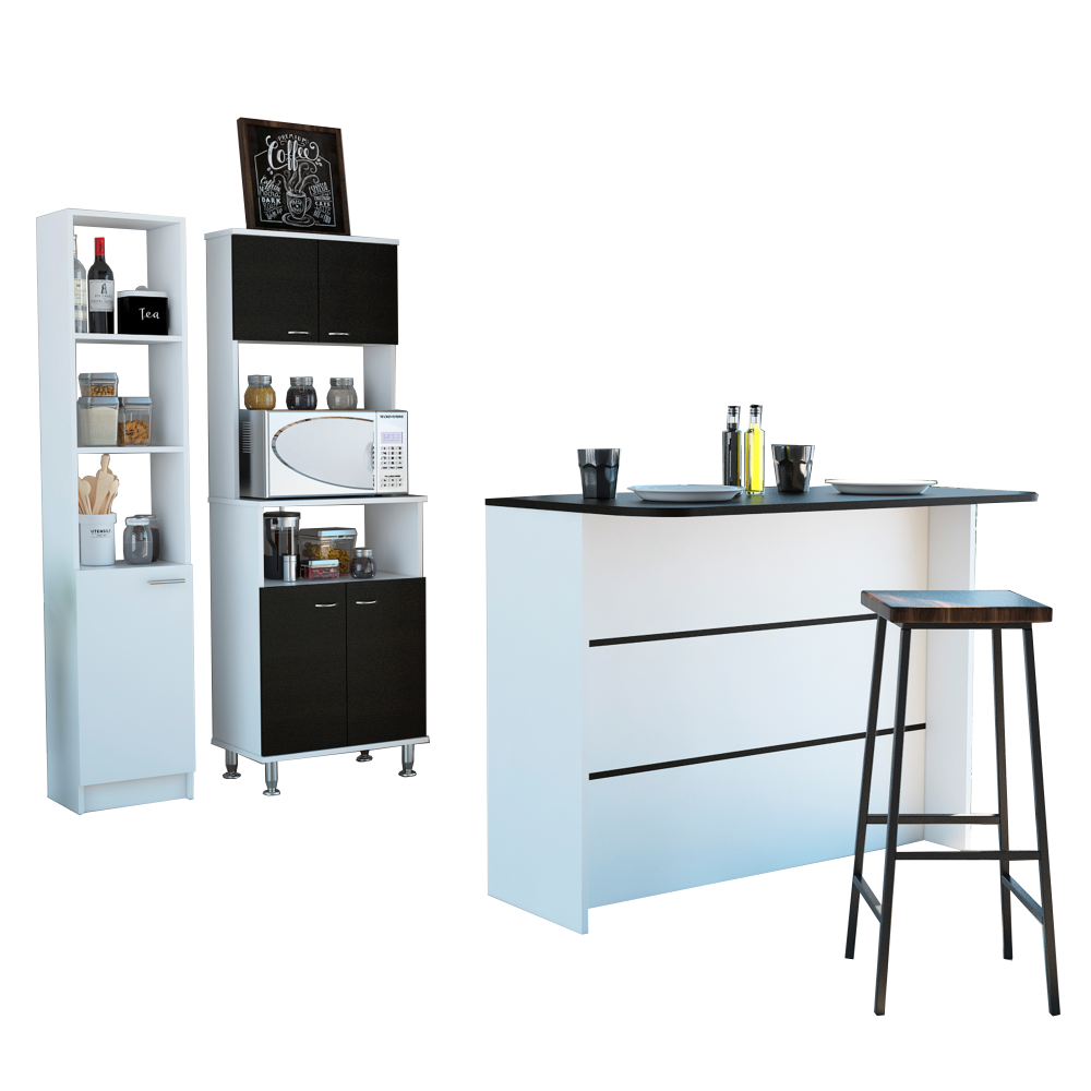 Combo Kitchen, Wengue y Blanco, incluye mueble microondas 54, barra y optimizador