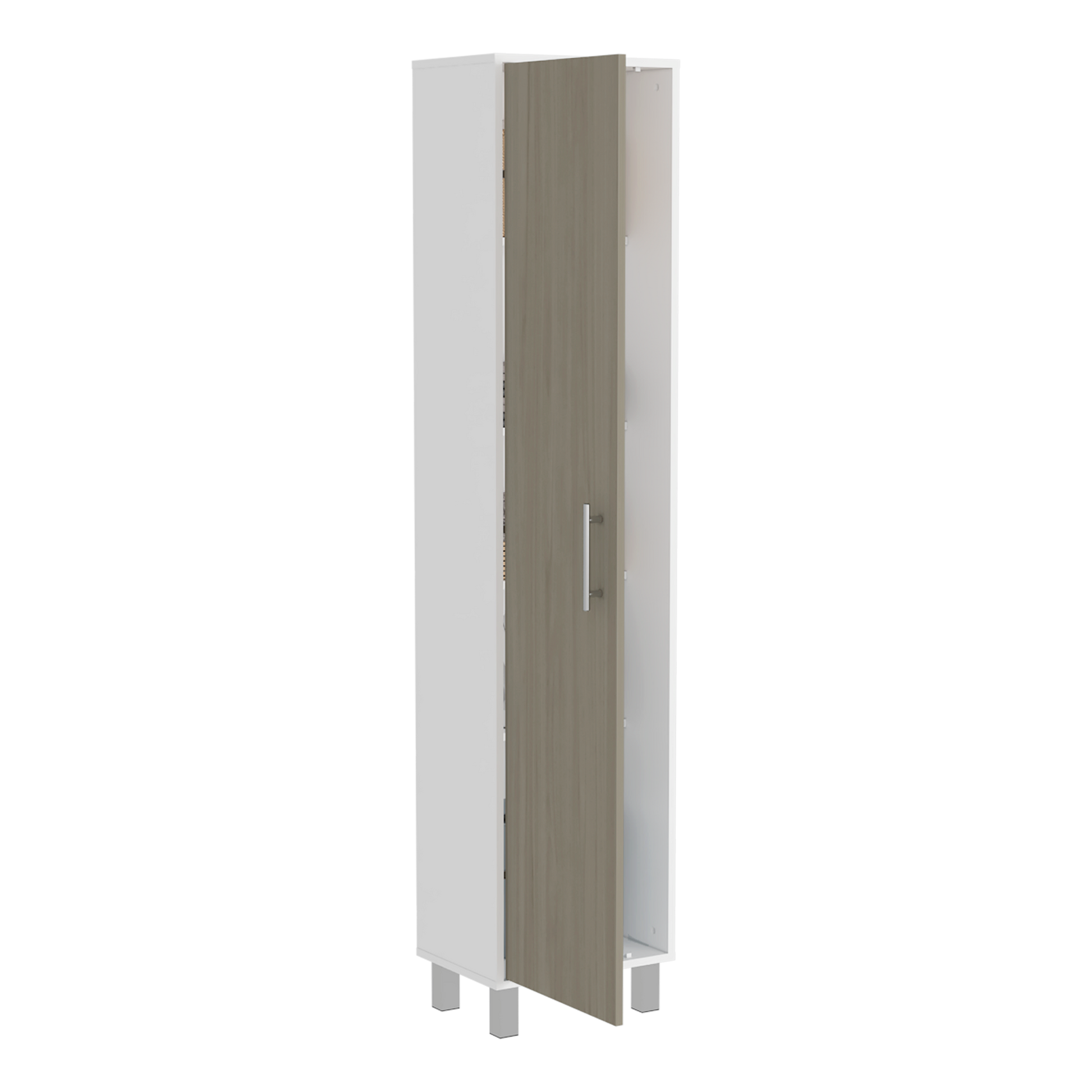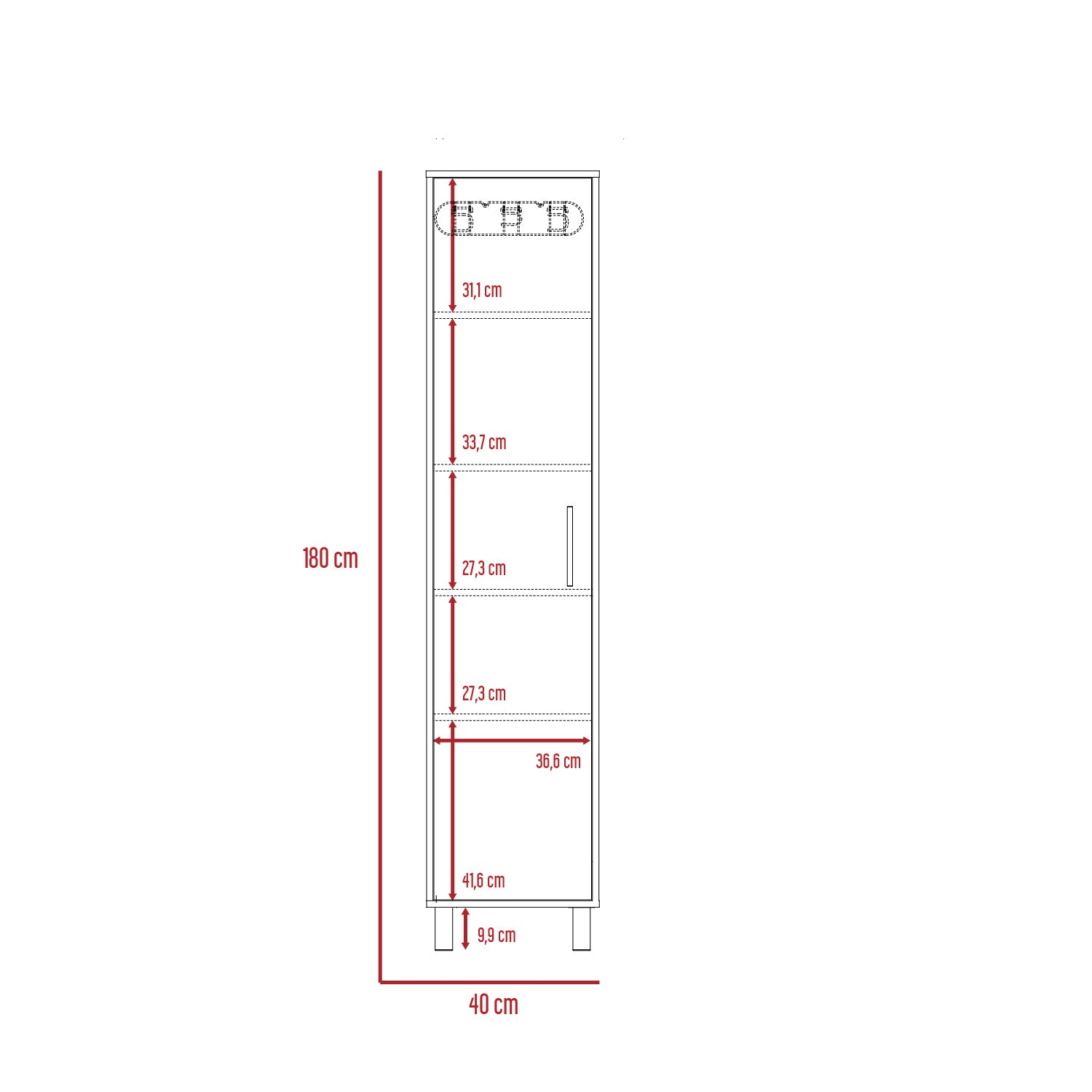 Optimizador, con 1 puerta batiente y múltiples repisas para colocar objetos de aseo.