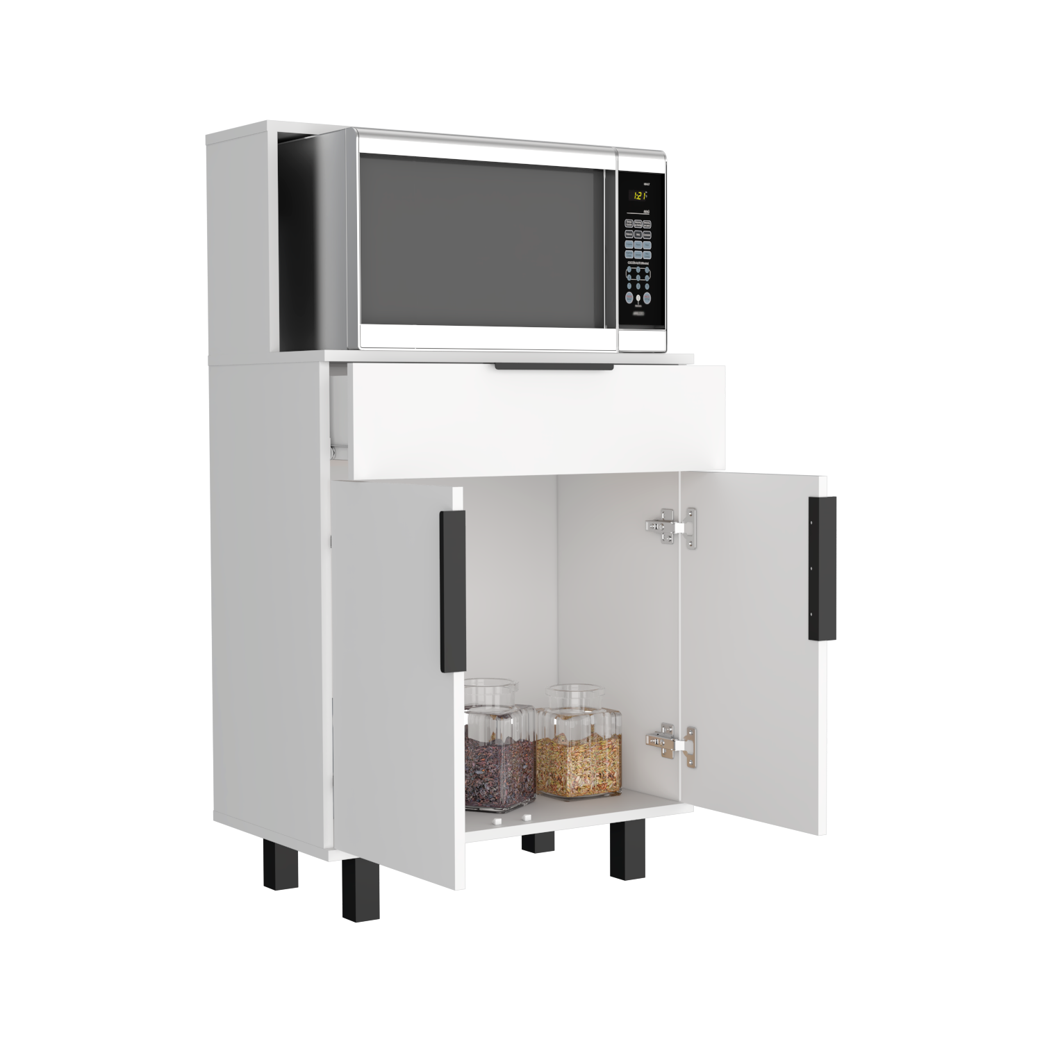 Mueble Microondas Bajo Oshawa, Blanco, con espacio para colocar horno microondas