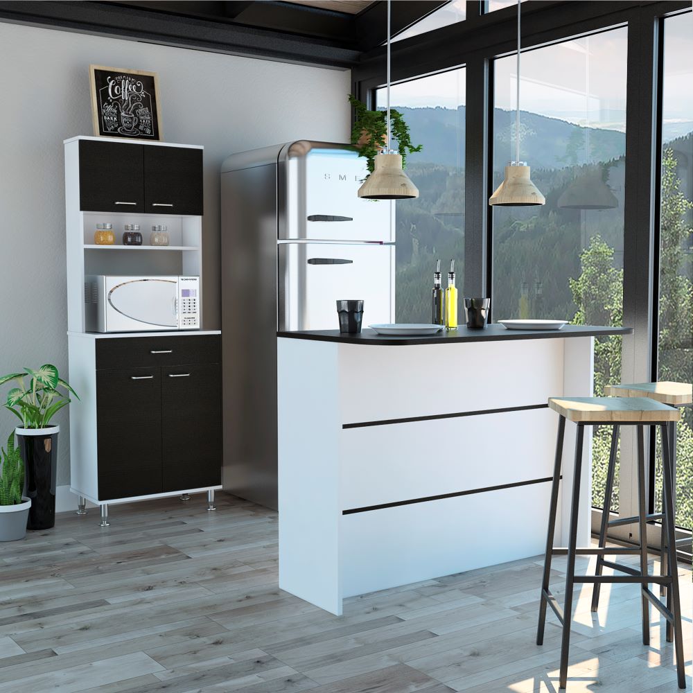 Combo Kitchen, Blanco y Wengue, incluye mueble microondas y barra