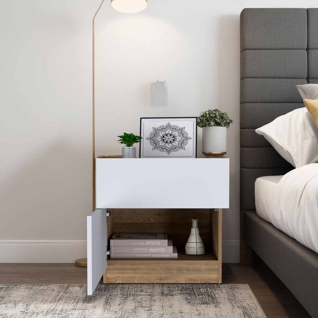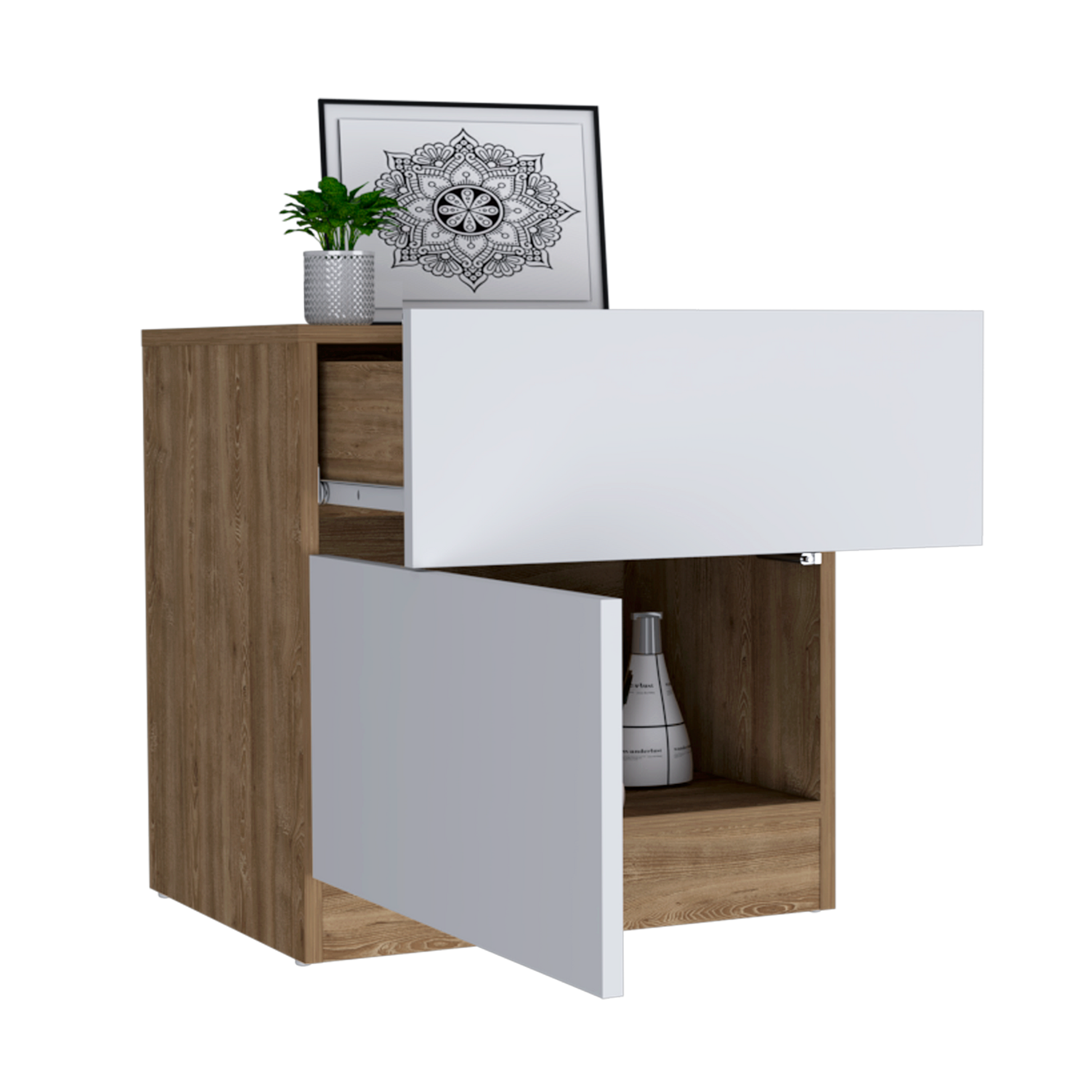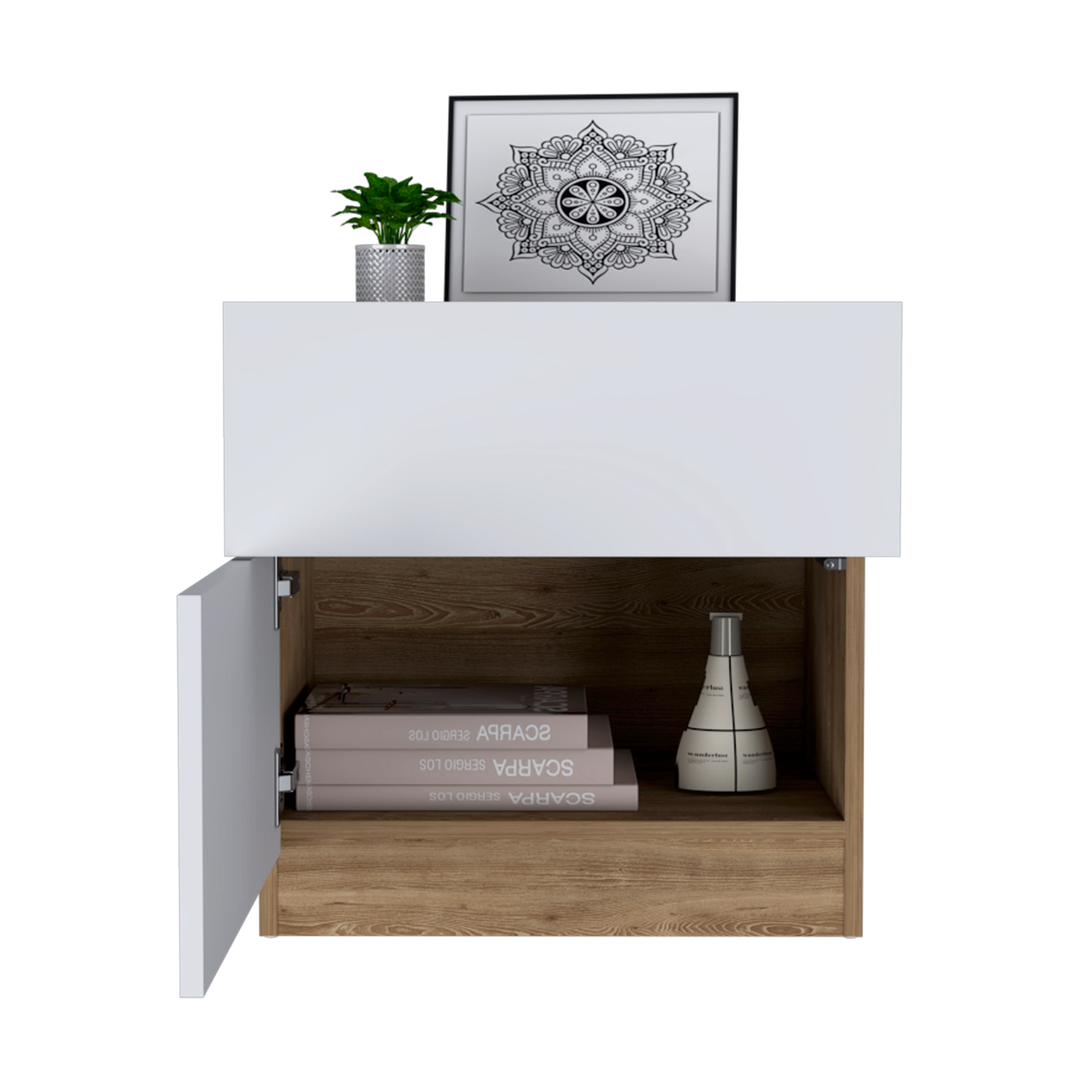 Velador Nebrask, Miel y Blanco Duqueza, con Un Cajón Organizador